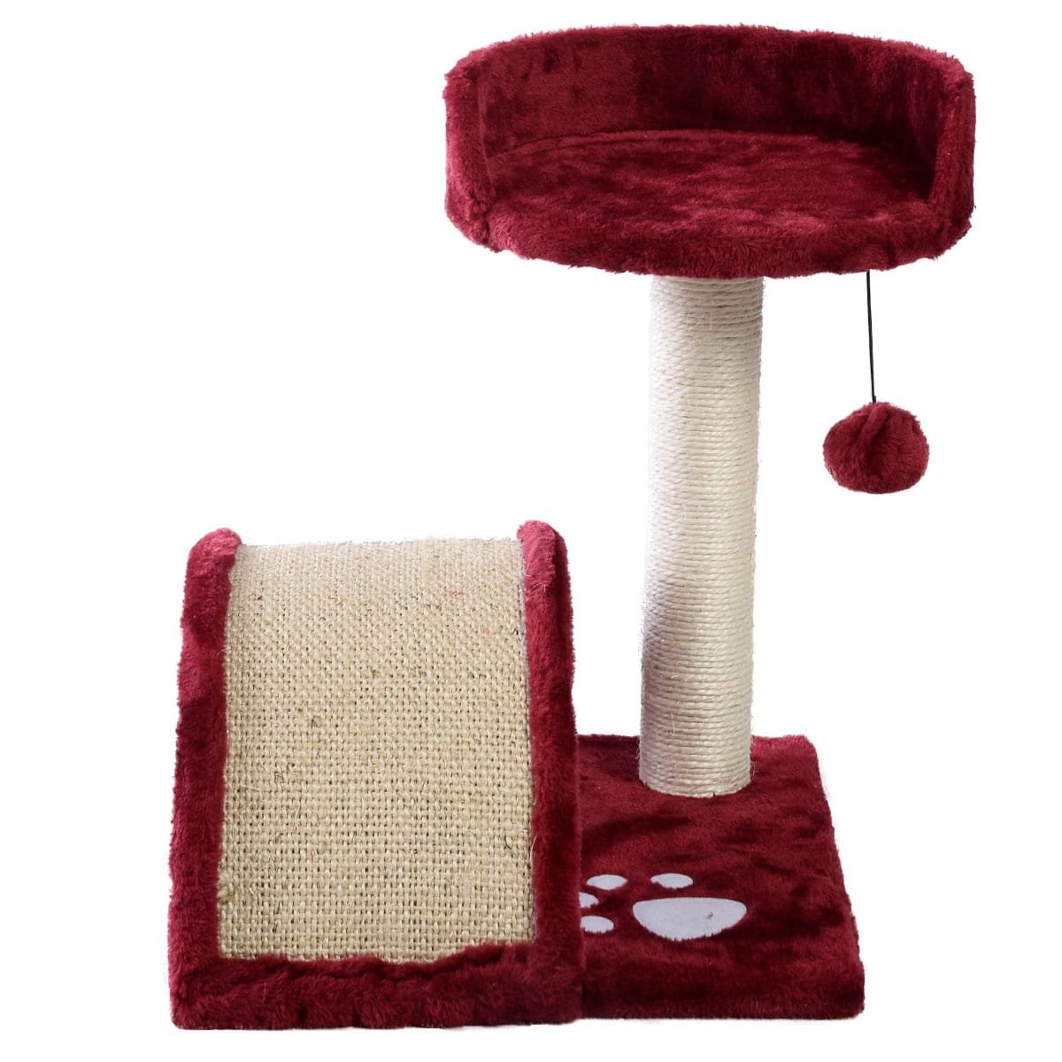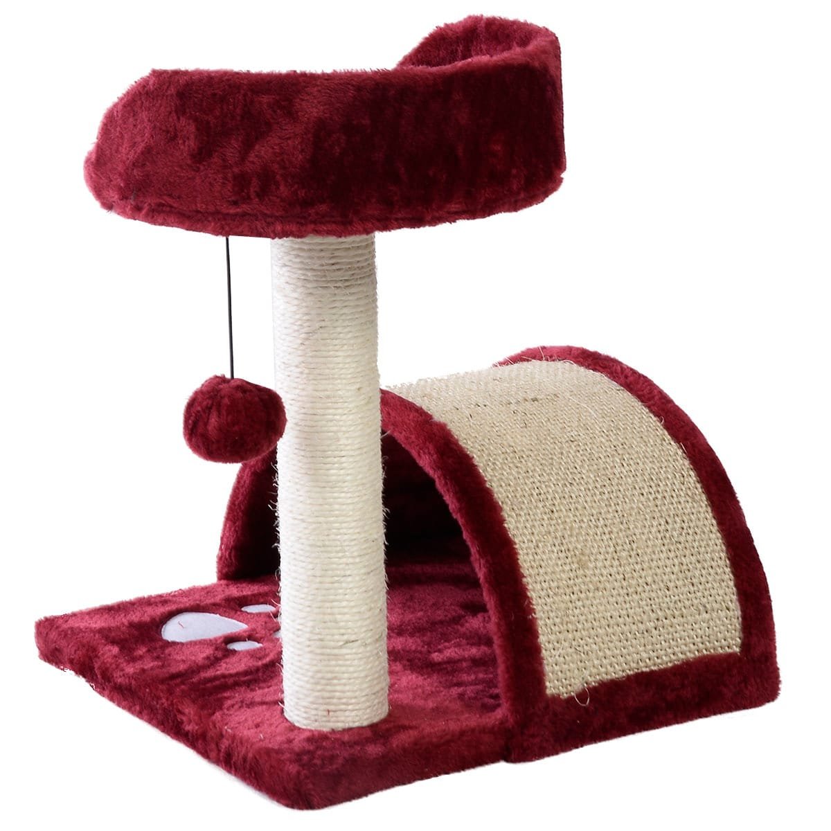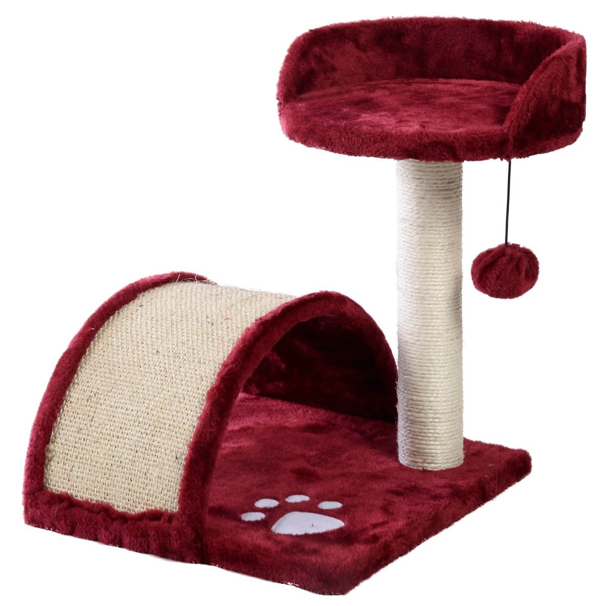 Katės draskyklė su sizalio stulpu ir pliušiniu paviršiumi (Vyno raudona)