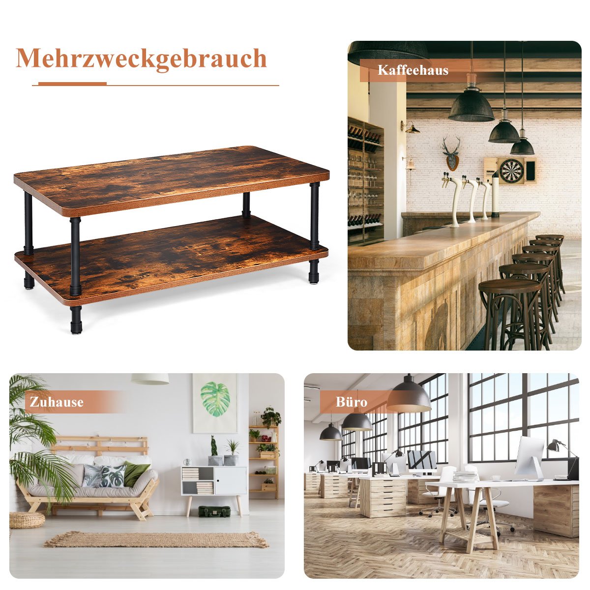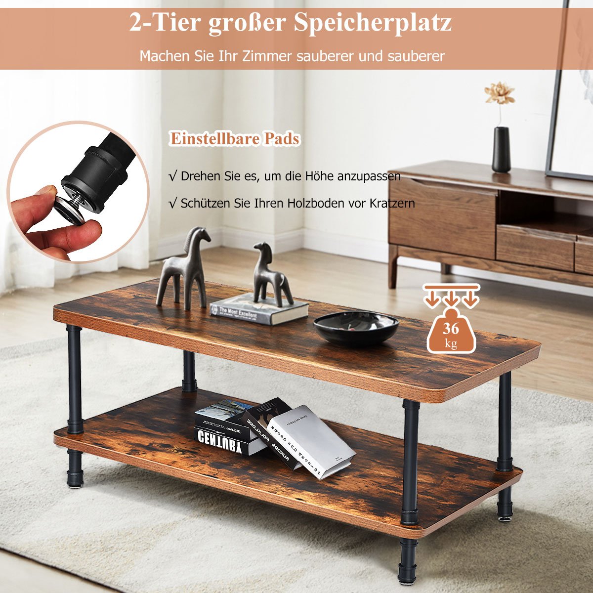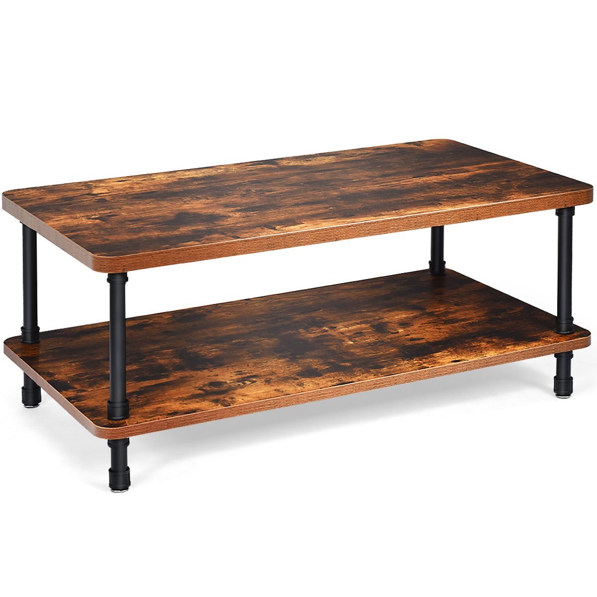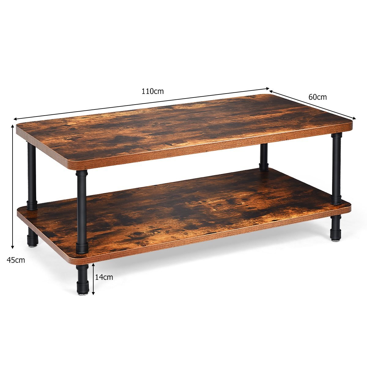 Šis retro stiliaus kavos staliukas taps puikiu jūsų svetainės akcentu. Pagamintas iš medžio drožlių plokštės ir itin tvirtų plieno vamzdžių, jis yra pakankamai stabilus ir atlaiko iki 36 kg svorį. Dvigubo aukščio dizainas suteikia daug vietos kasdieniams daiktams laikyti.