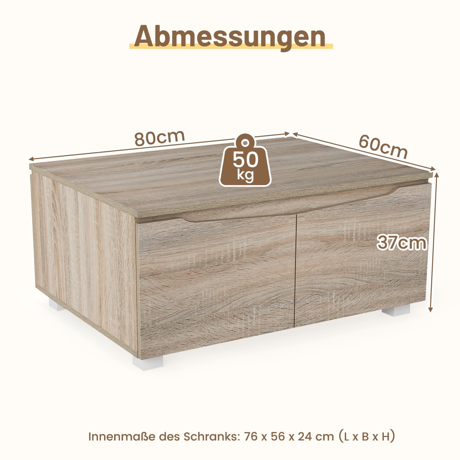 - Patogus dvipusis atidarymas: Keturios durys leidžia patogiai atidaryti staliuką iš abiejų pusių, užtikrinant lengvą prieigą prie viduje esančių daiktų.