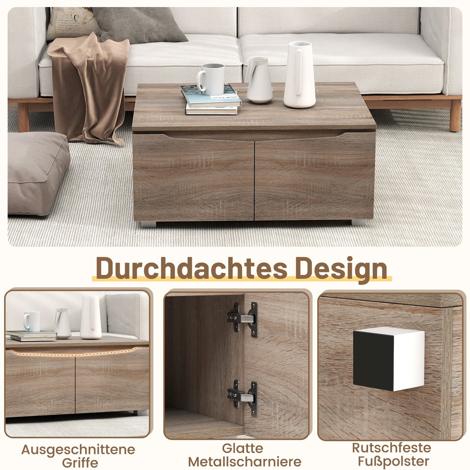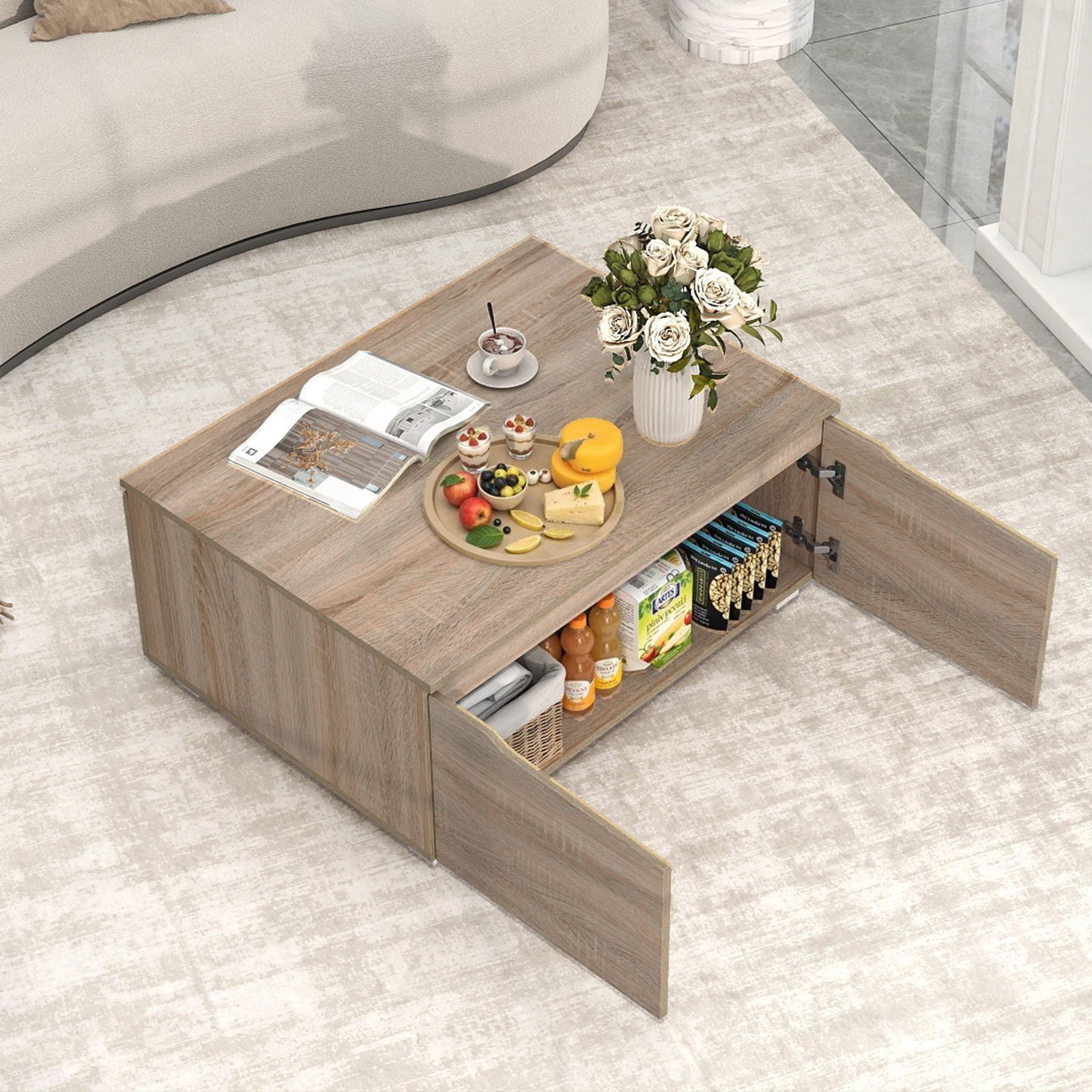 Kavos staliukas su paslėpta daiktadėže ir keturiomis dvipusėmis durelėmis (Ąžuolo pilka)
