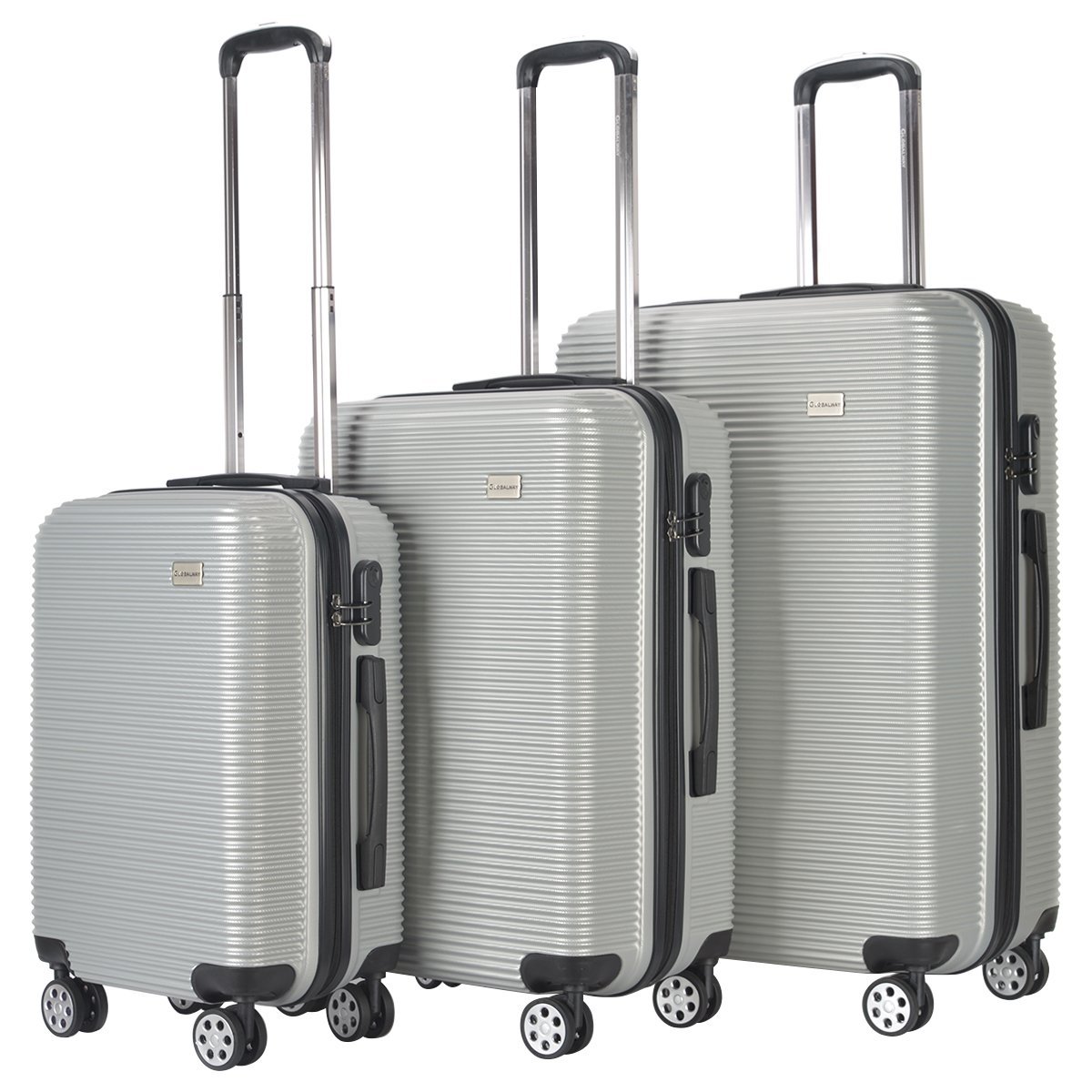 Kelioninių tvirtų sienelių lagaminų rinkinys su kodine spyna (Sidabrinė)