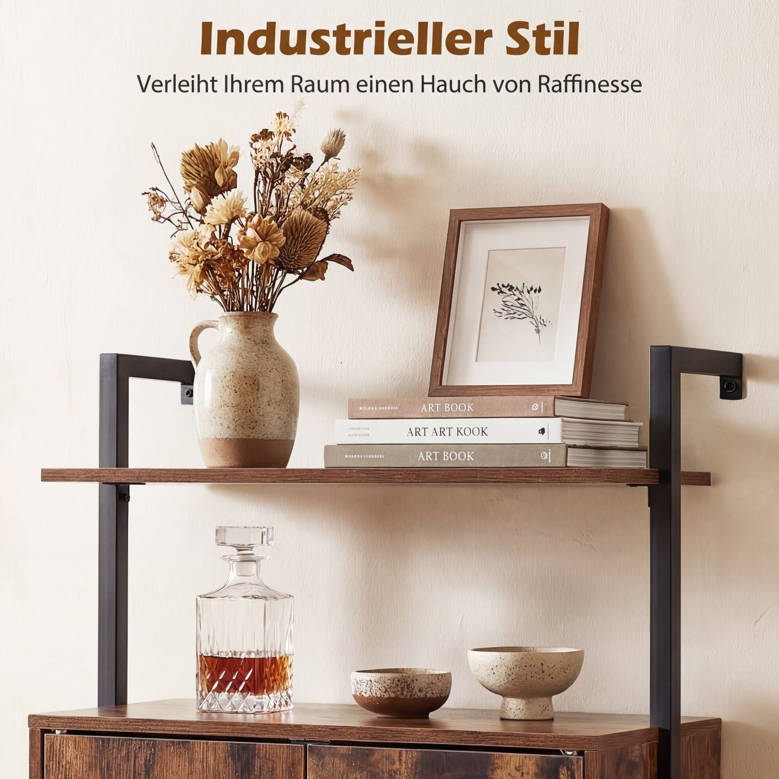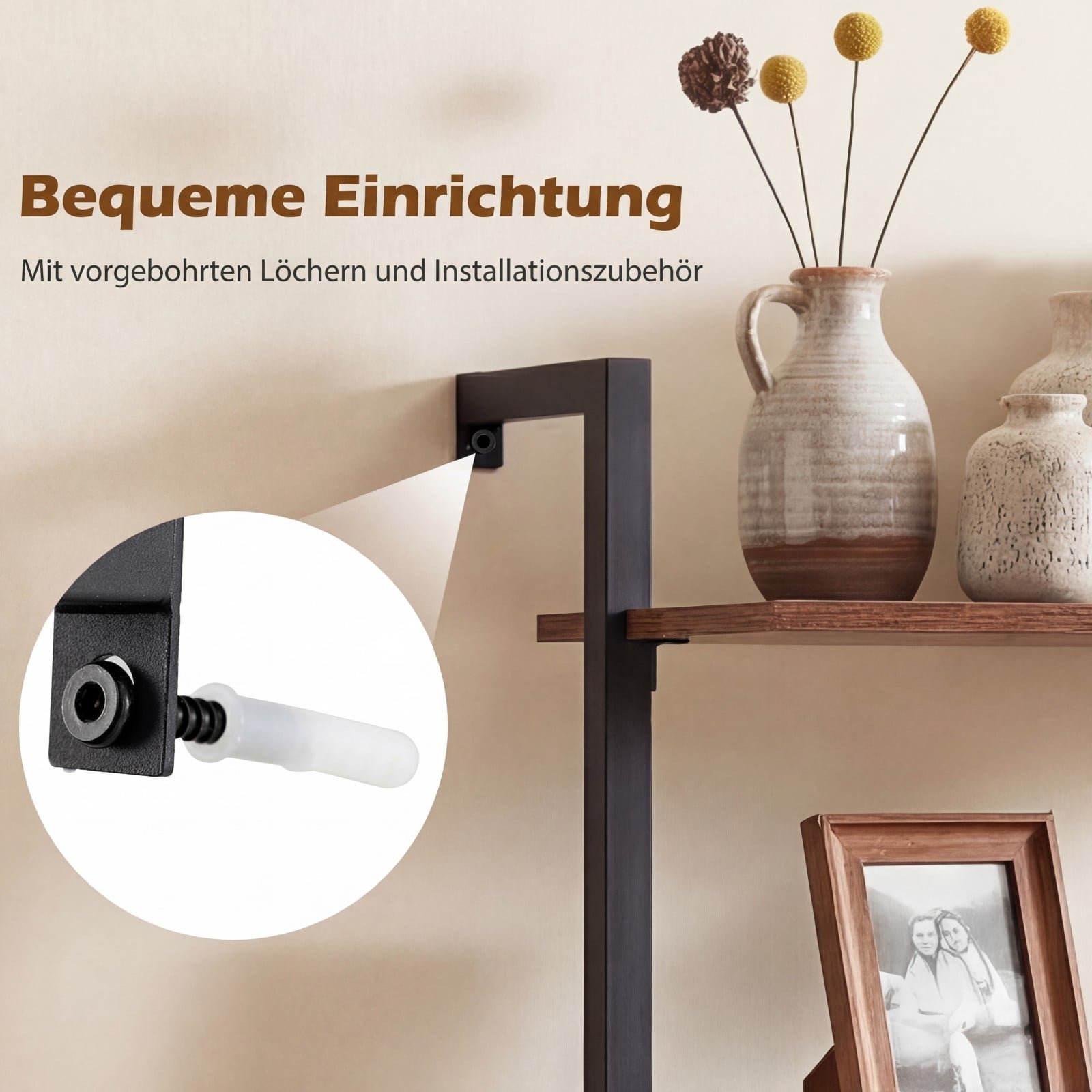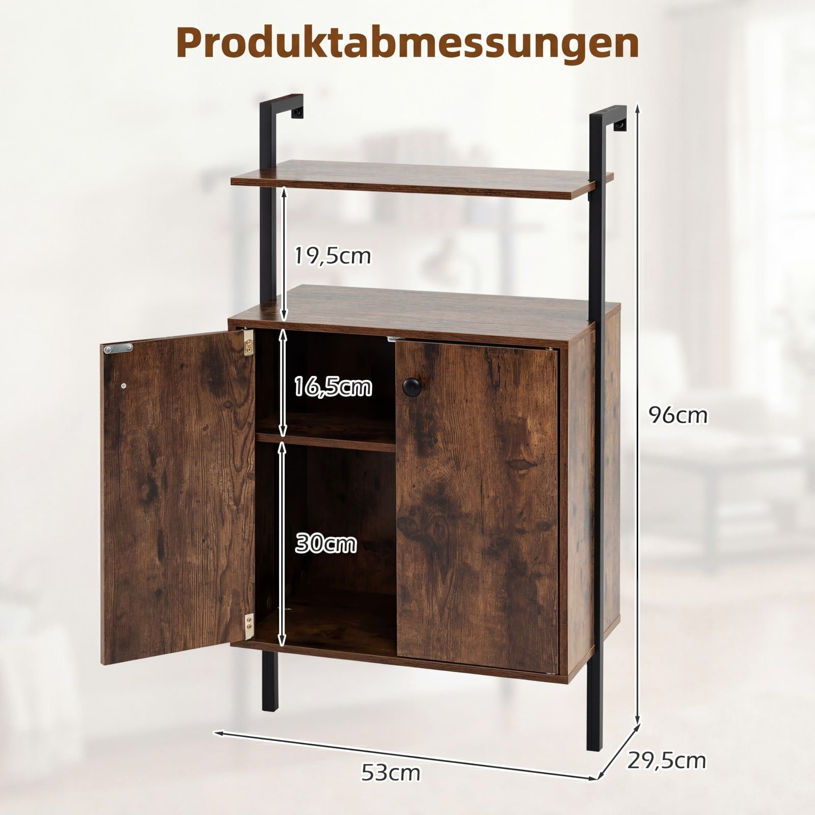 Keturių aukštų sieninė lentyna su spintele ir atviromis lentynomis (Rusvai ruda)