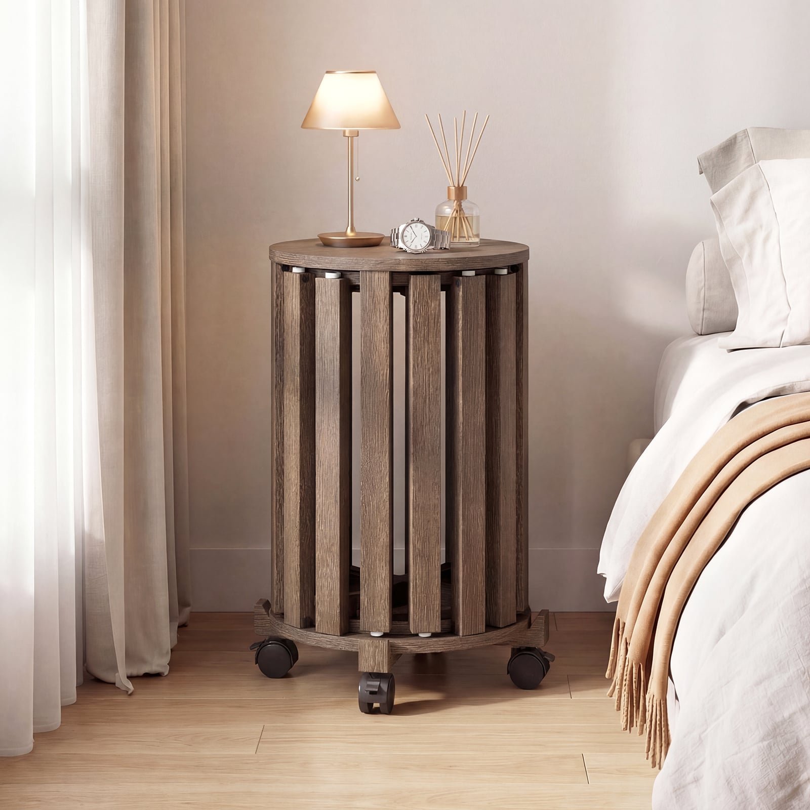 Keturių sustatomų medinių taburečių komplektas su ratukais (Riešuto)