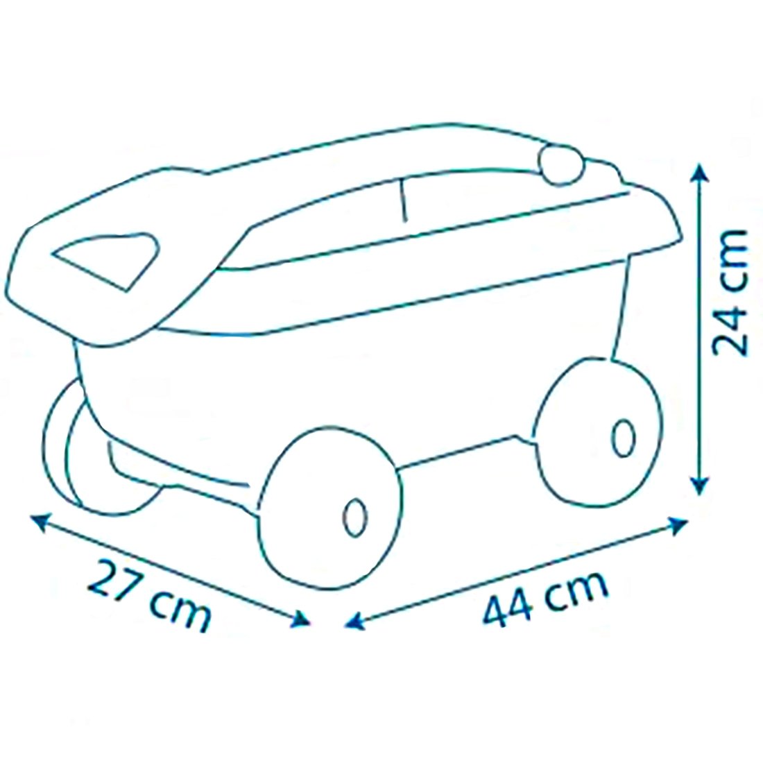 - Rinkinį sudaro spalvotas vežimėlis su ergonomiška traukimo rankena, skirtas patogiam smėlio žaislų ir priedų transportavimui.