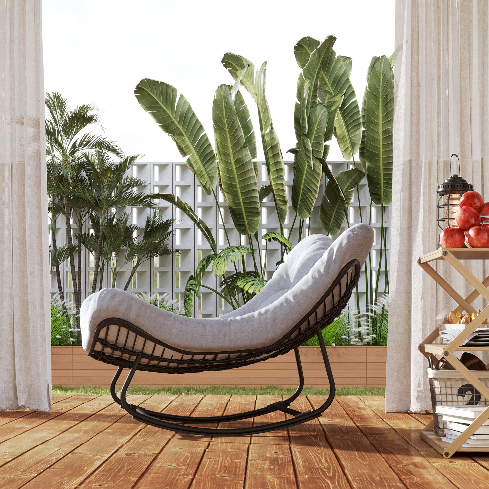 Mėgaukitės stilingu atsipalaidavimu sūpynių kėdėje iš ratano, kuri greitai taps jūsų mėgstamiausia verandoje! Pagaminta jaukaus kiaušinio formos dizainu, ši ratano sūpynių kėdė siūlo švelnų siūbavimą, idealiai tinka naudoti tiek viduje, tiek lauke. Su nerūdijančio plieno pagrindu ir UV spinduliams atspariu PE ratanu, ji puikiai tinka atsipalaiduoti verandoje ar terasoje. Ši elegantiška ratano sūpynių kėdė užtikrina komfortą su minkštomis pagalvėmis ir ramiu siūbavimu.
