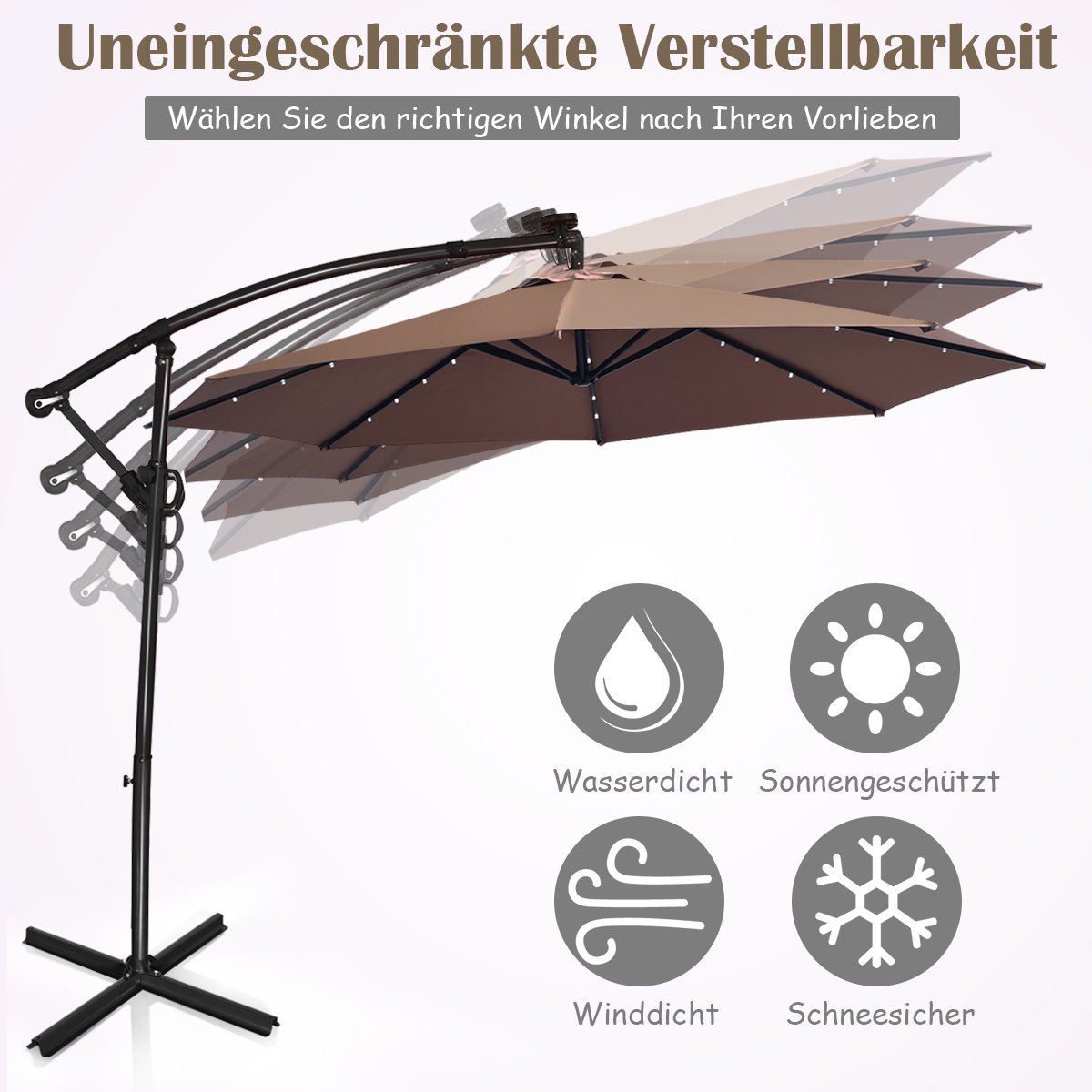 Kiemo skėtis nuo saulės su LED apšvietimu 300 cm (Ruda)