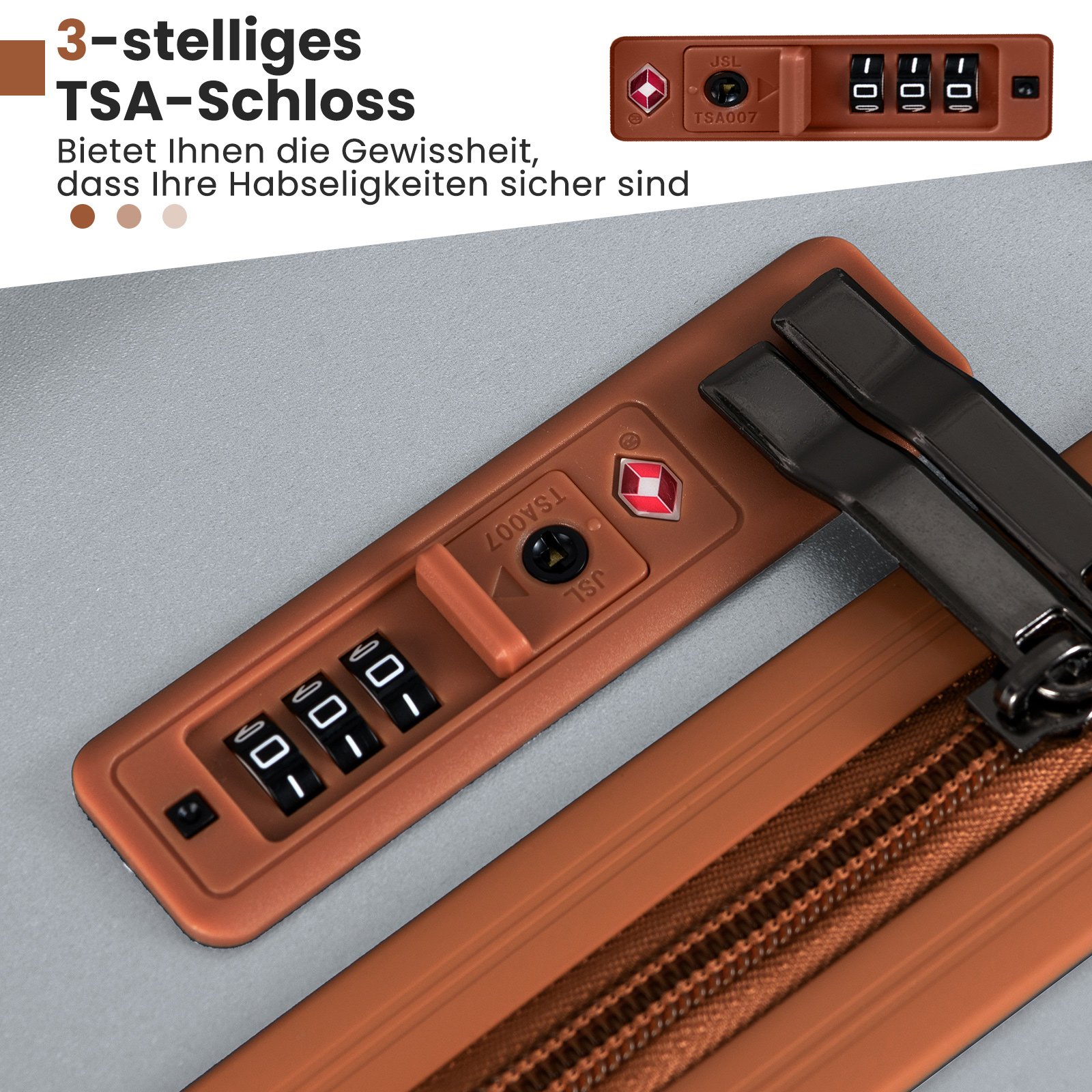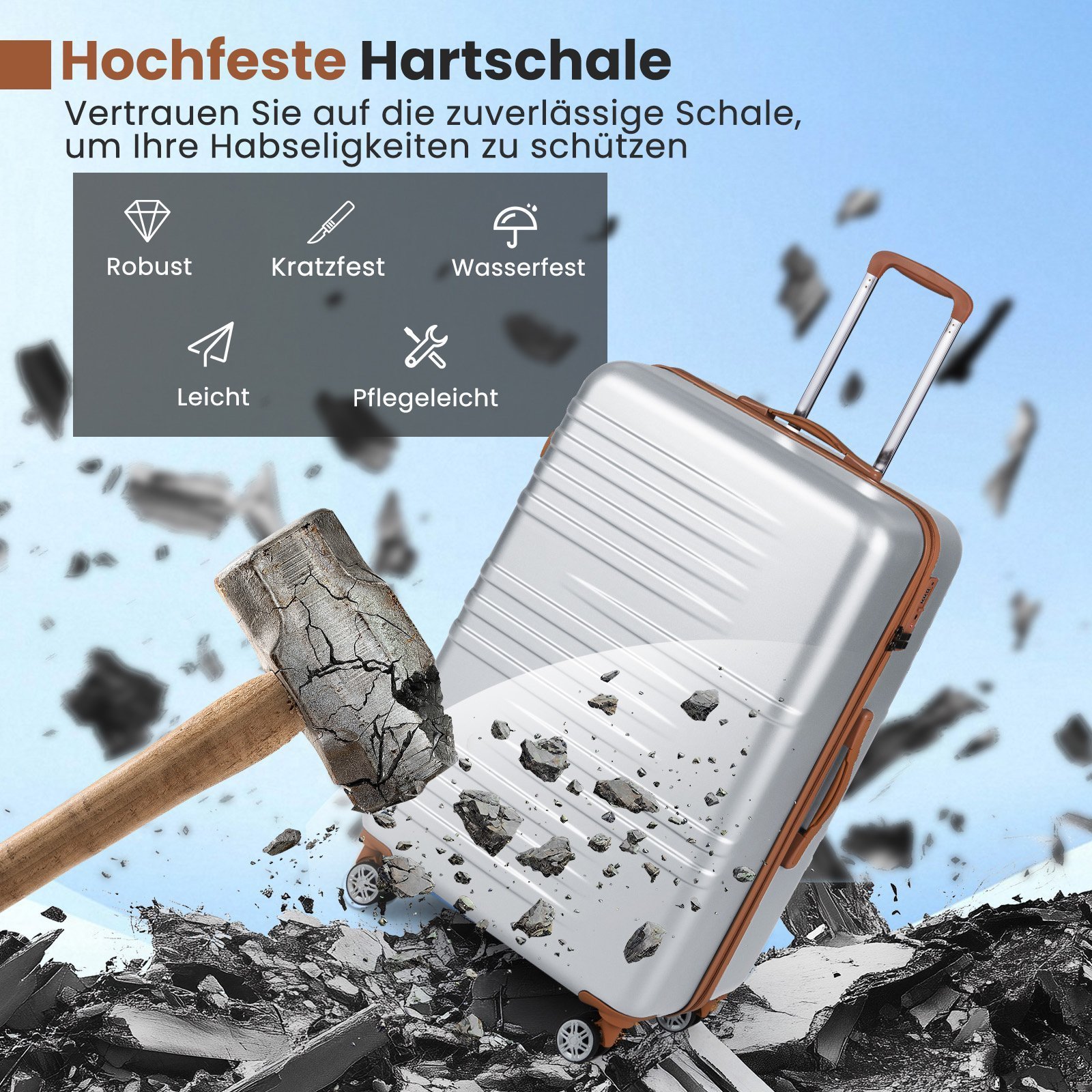Šis 3 dalių kieto korpuso lagaminų komplektas (20, 24 ir 28 colių) pagamintas iš patvarios ABS ir PC medžiagos, užtikrinančios ilgaamžiškumą, apsaugą nuo įbrėžimų ir vandens. Jūsų daiktai bus saugiai ir tvarkingai supakuoti, o sklandžiai riedantys ratukai bei reguliuojama rankena leis mėgautis patogiomis ir sklandžiomis kelionėmis.