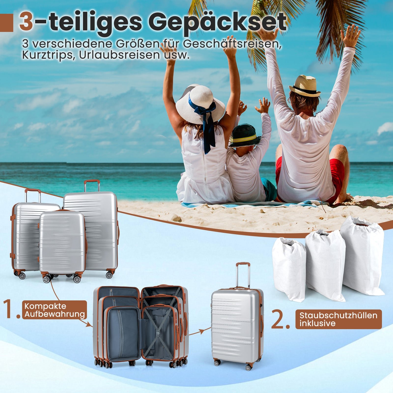 Kieto korpuso 3 dalių lagaminų komplektas su TSA užraktu (Sidabrinė)