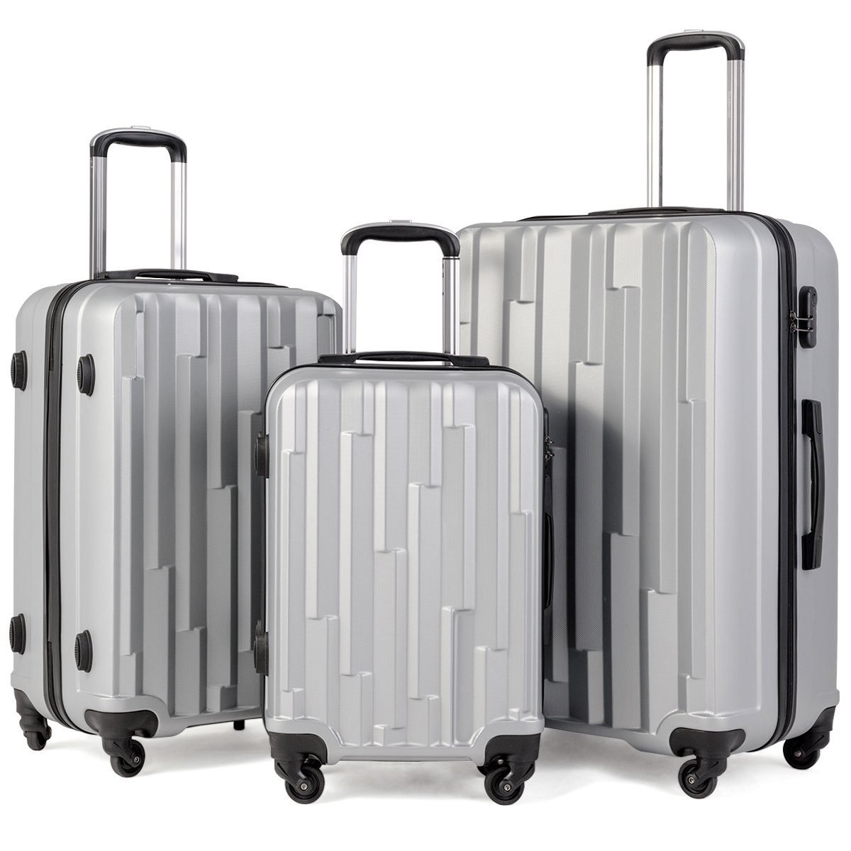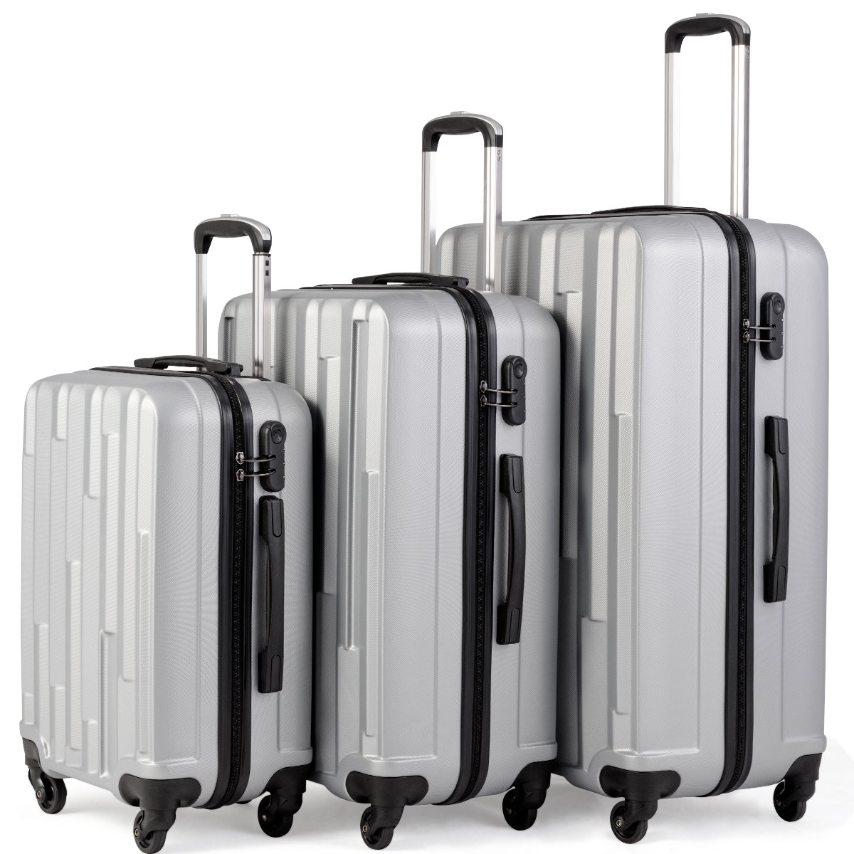 Kieto korpuso kelioninių lagaminų rinkinys su kodine spyna (Sidabrinė)