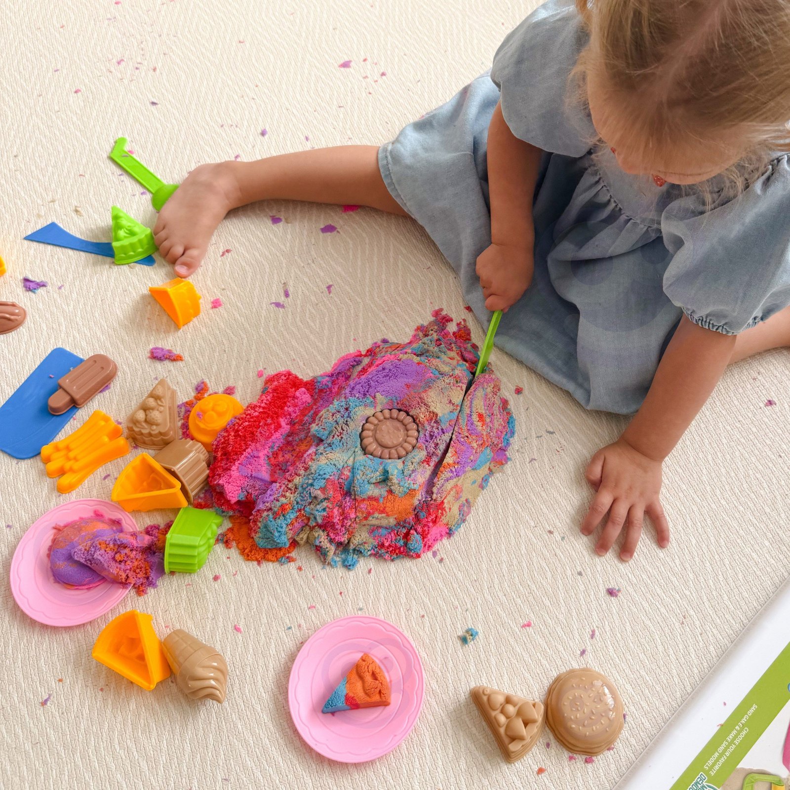 Kinetinio smėlio maisto gaminimo rinkinys su staliuku ir formelėmis