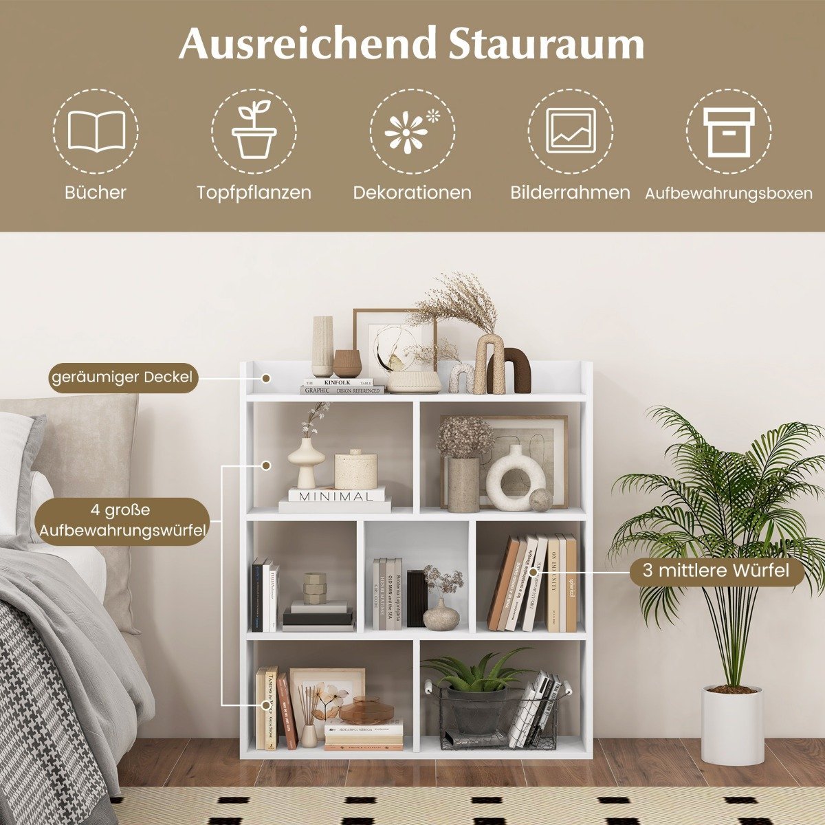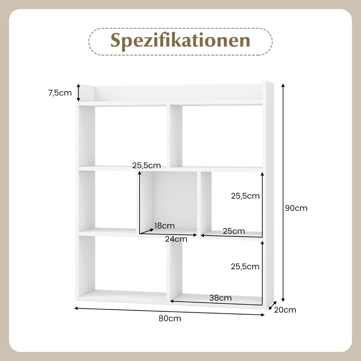 Knygų lentyna su septyniais skyreliais ir atviru galu (Balta)
