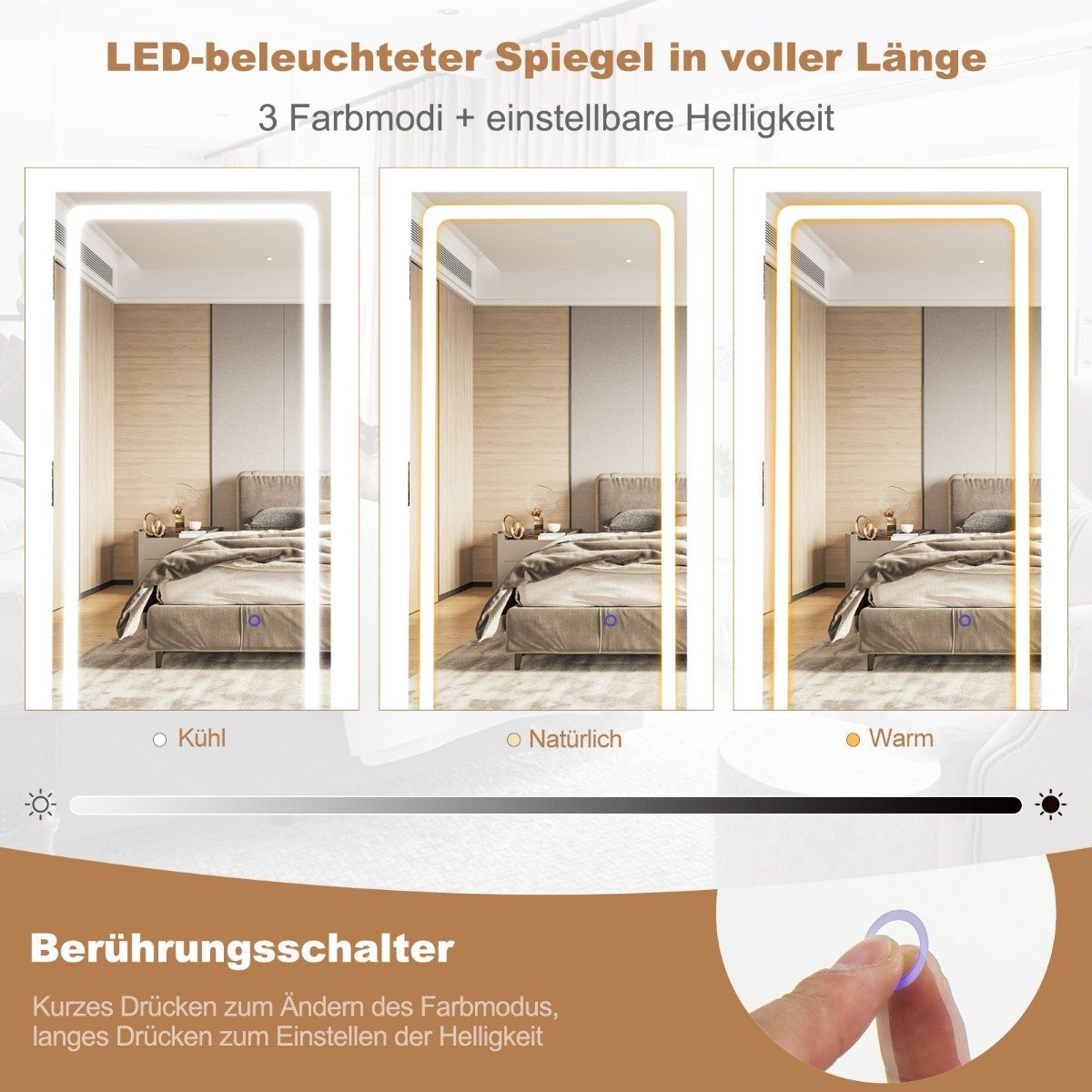 - Didžiojo veidrodžio matmenys: 37 cm x 155 cm (Ilgis x Aukštis)