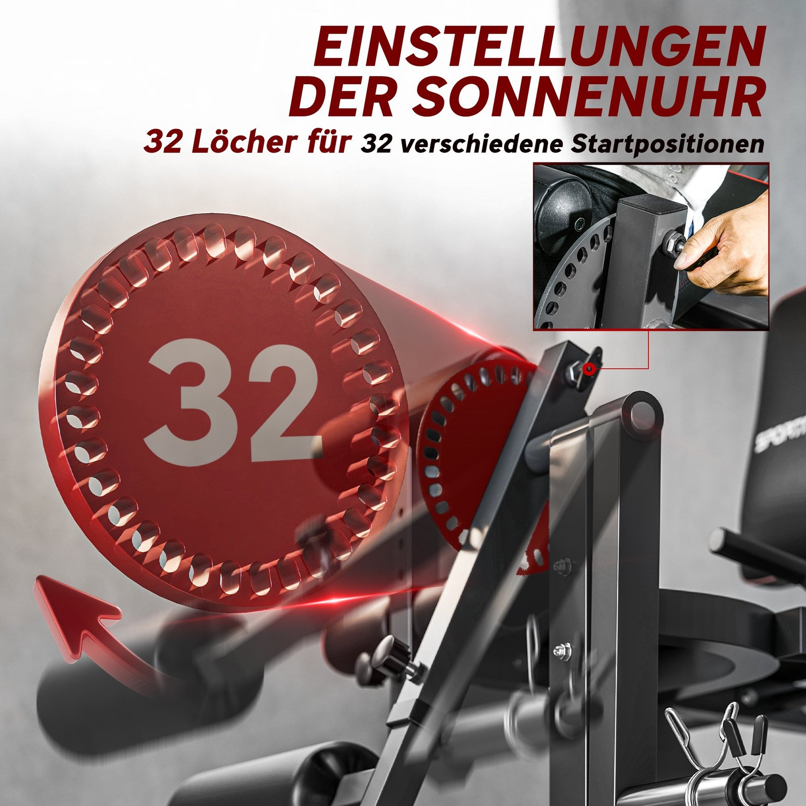 Kojų tiesimo ir lenkimo treniruoklis su 32 reguliuojamomis padėtimis