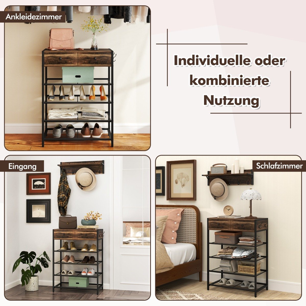 Kombinuotas batų stovas ir sieninė spintelė su kabliukais bei stalčiais (Ruda)