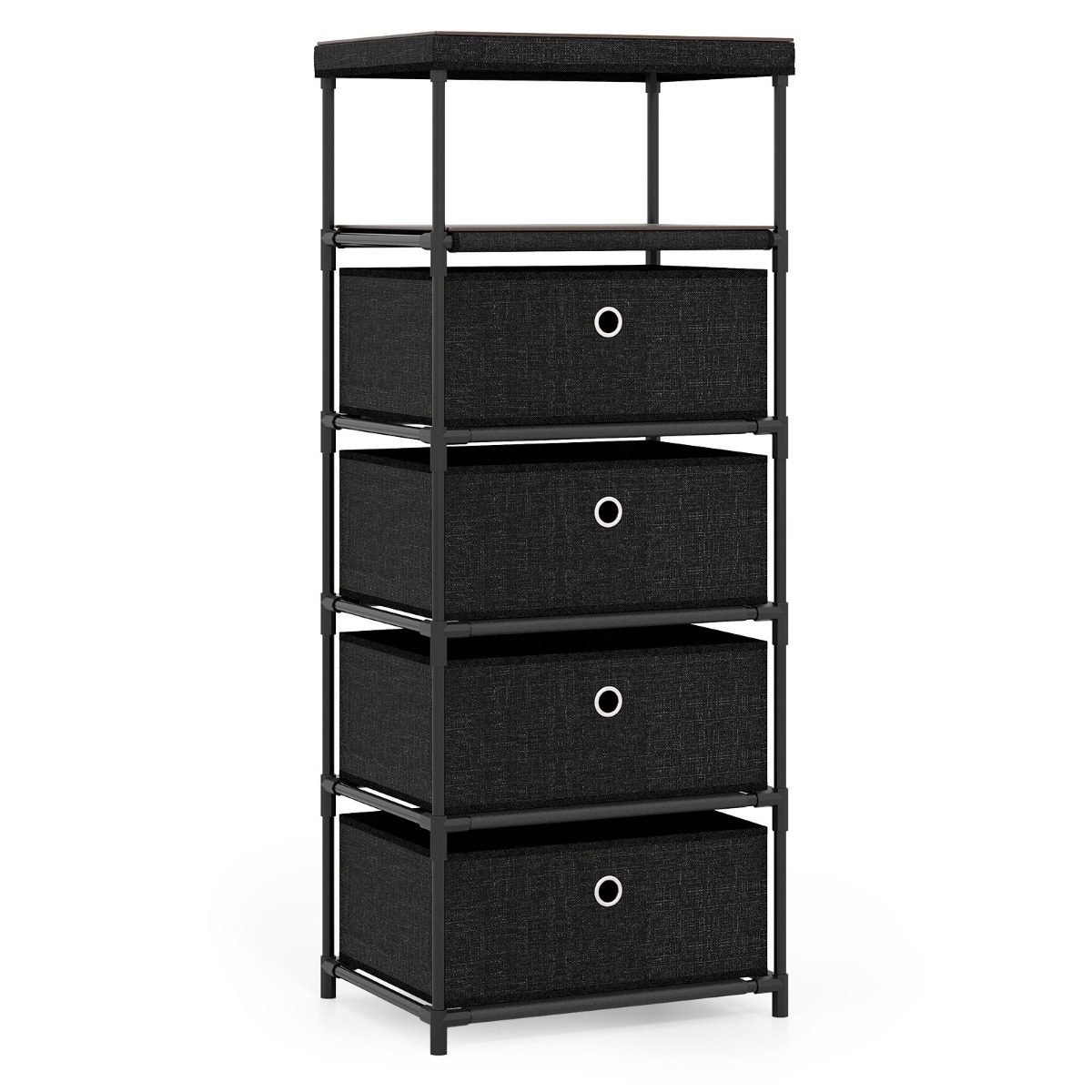 Komoda su keturiais stalčiais ir drožlių plokštės viršumi (Juoda)