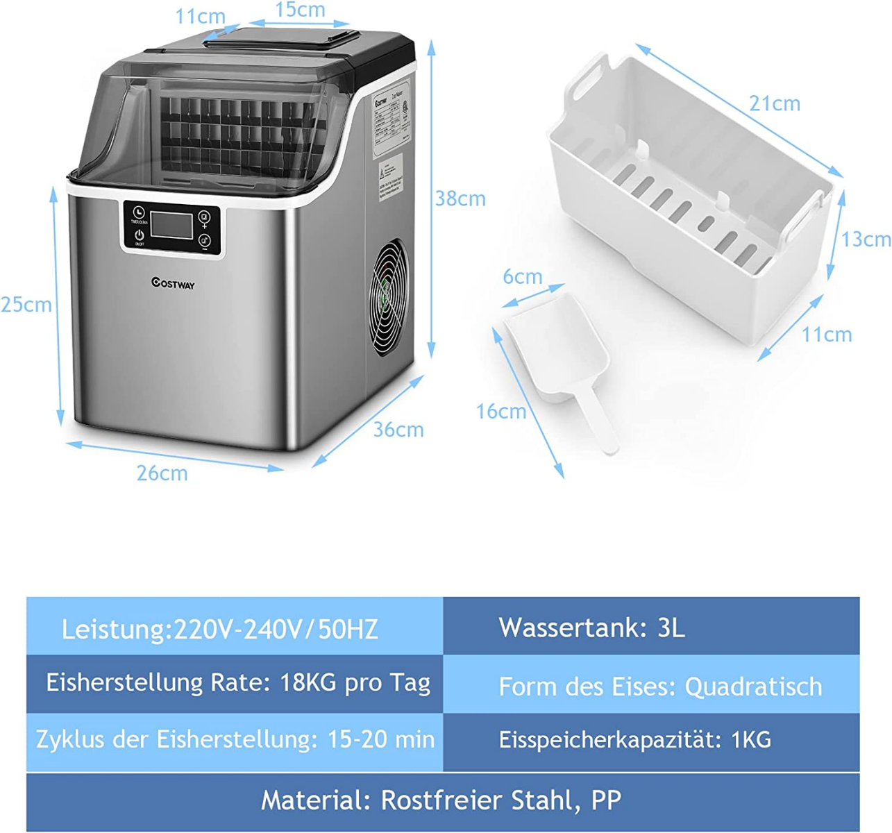 - Greitas ledo gaminimas: pagamina 24 ledo kubelius per ciklą ir iki 18 kg ledo per dieną.