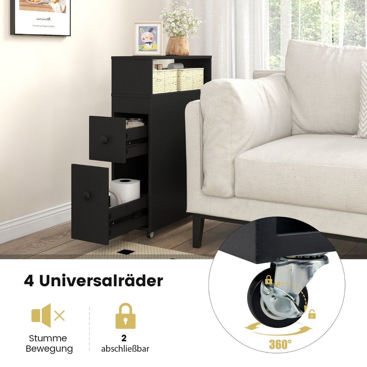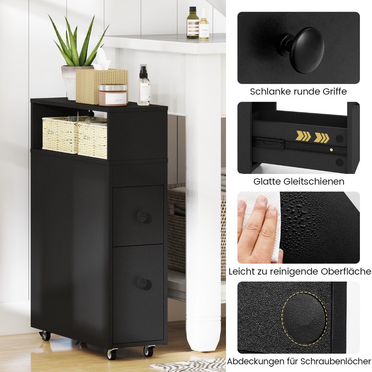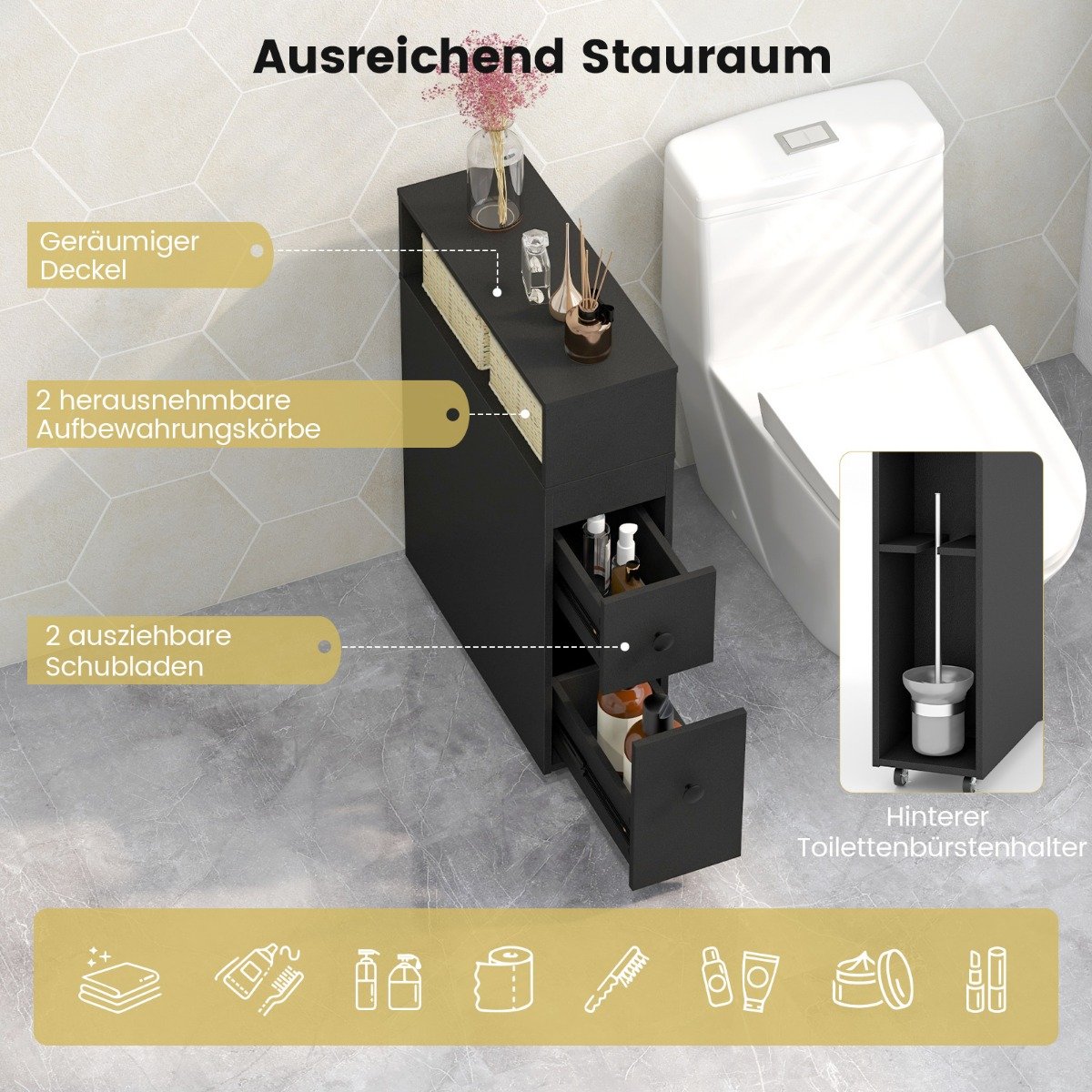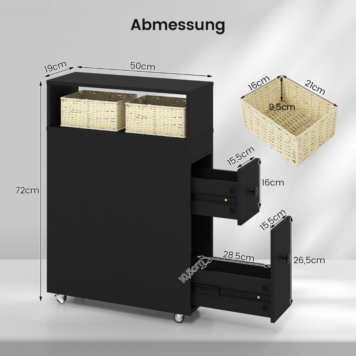 Kompaktiška vonios spintelė su stalčiais ir laikikliu (Juoda)