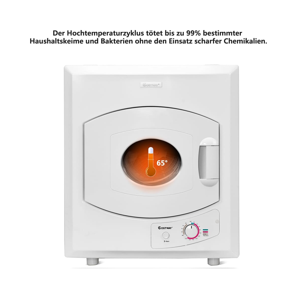 - Aukštos temperatūros ciklas naikina iki 99 % buitinių mikrobų.