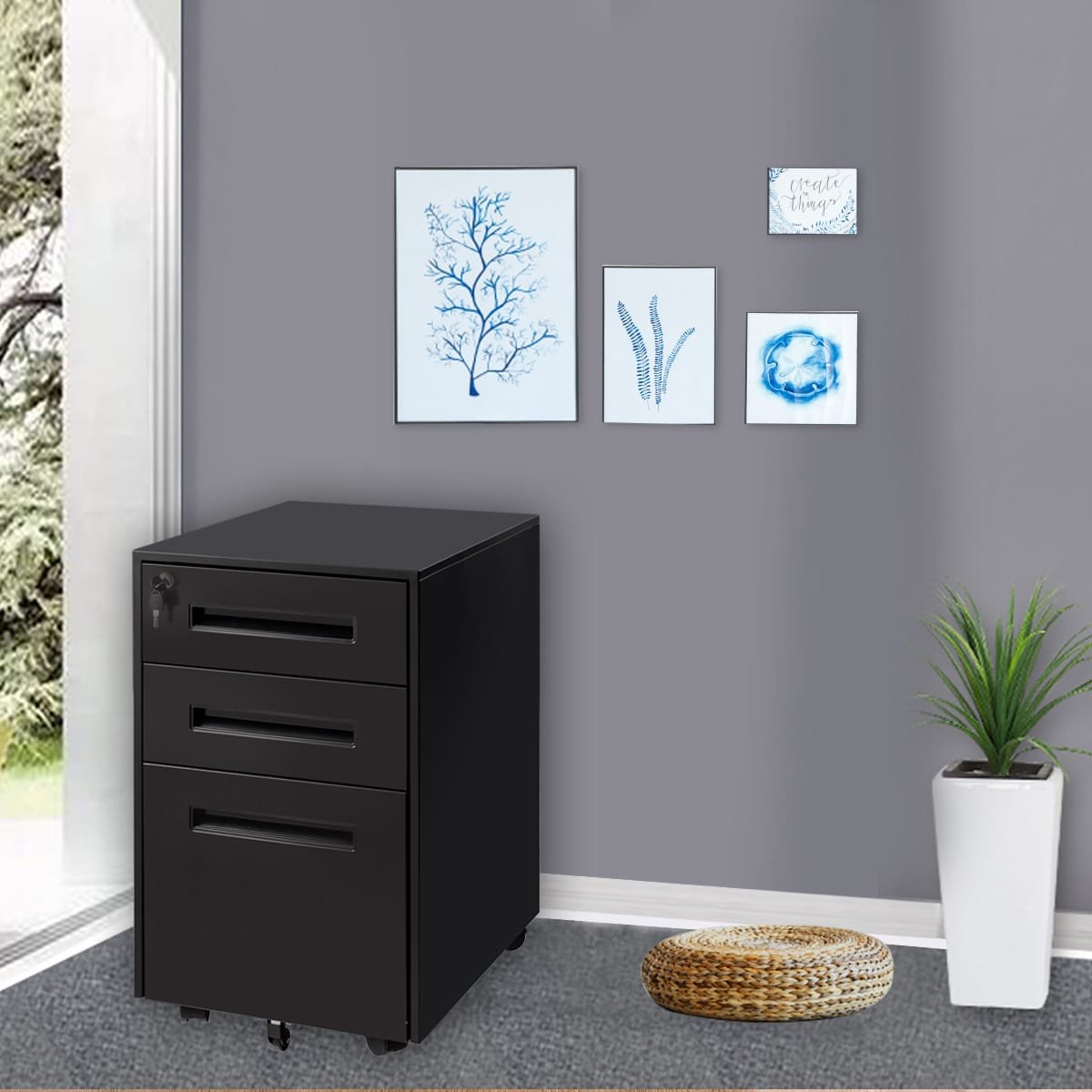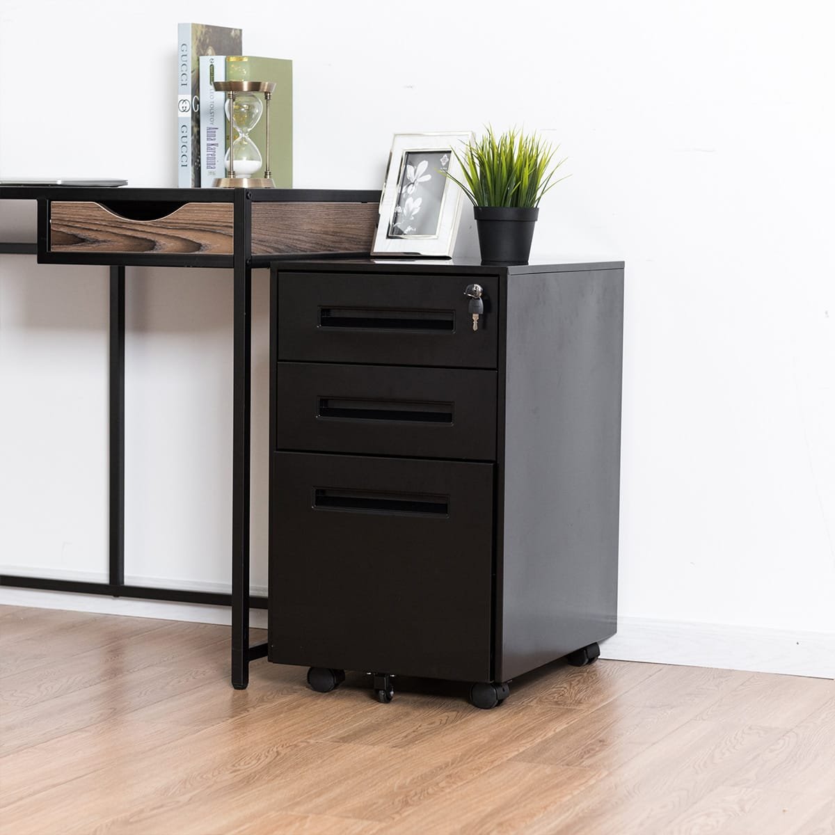 Kompaktiškas biuro konteineris su trimis stalčiais (Juoda)