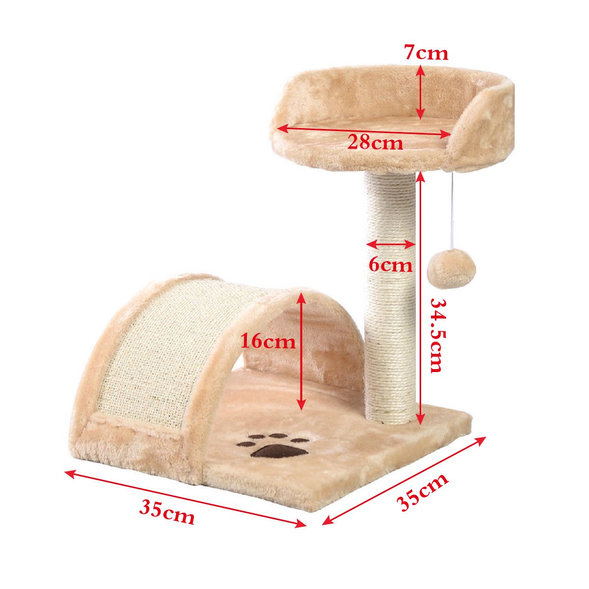 Kompaktiškas kačių draskymo medis su sizalio stulpu (Smėlio spalvos su pėdutėmis)
