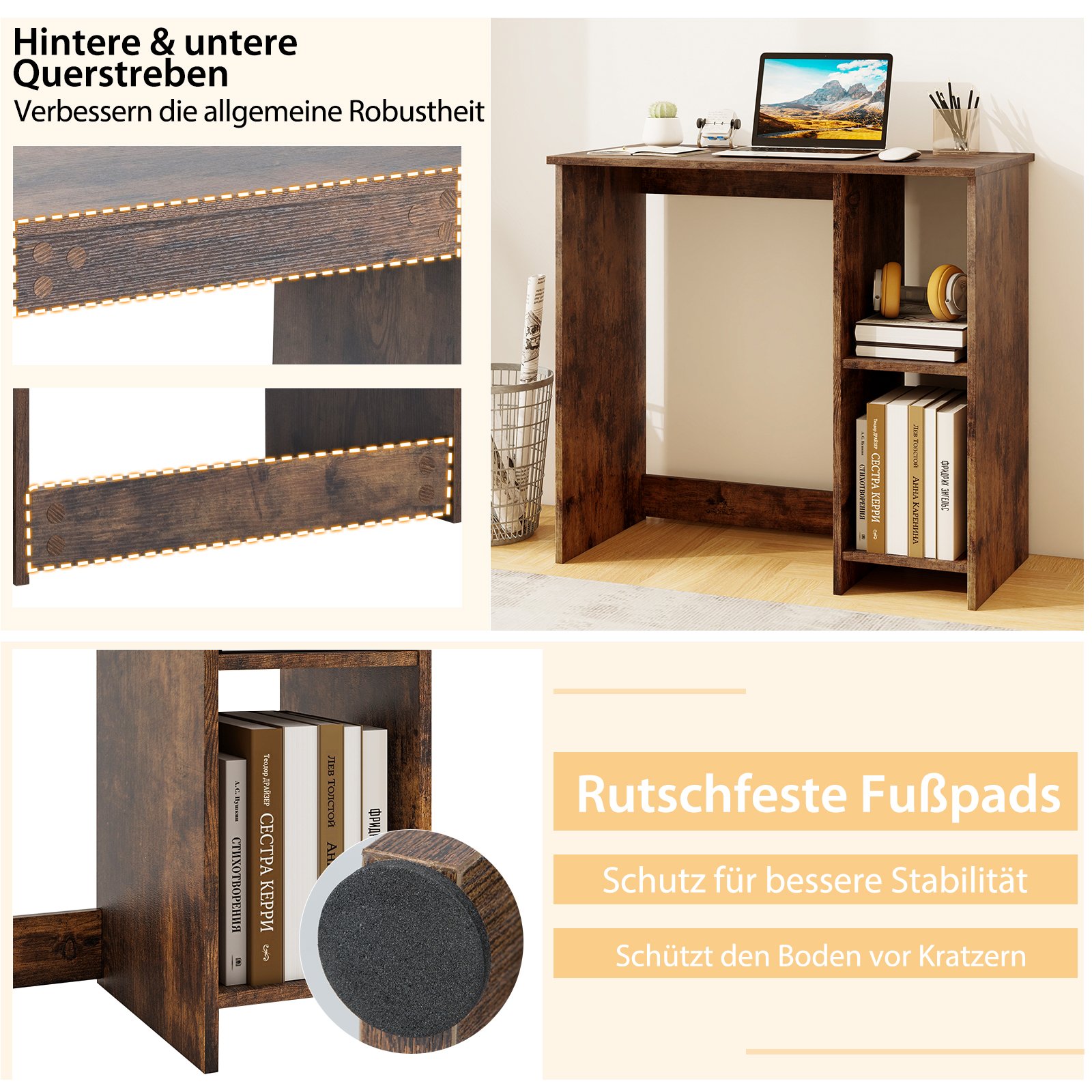 Kompaktiškas kompiuterio stalas su dviem lentynomis (Ruda)