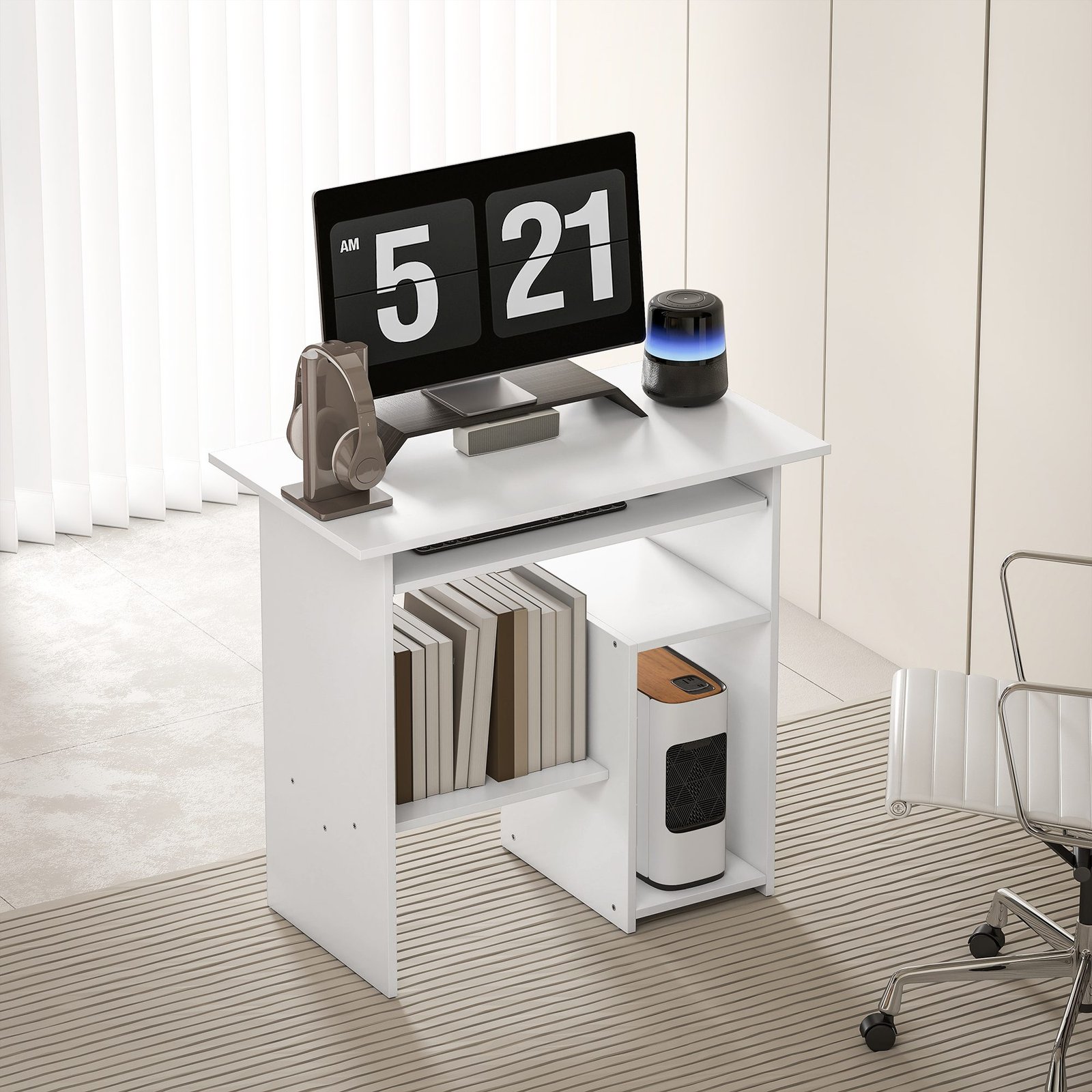 Kompaktiškas kompiuterio stalas su ištraukiama klaviatūros lentyna ir skyriais
