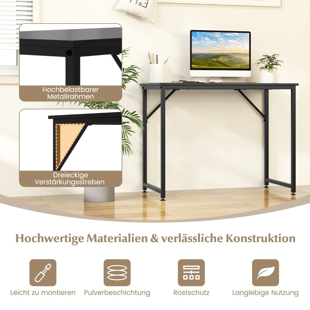 - Tvirtas metalinis rėmas ir trikampės atraminės strypos užtikrina ilgaamžiškumą ir stabilumą.