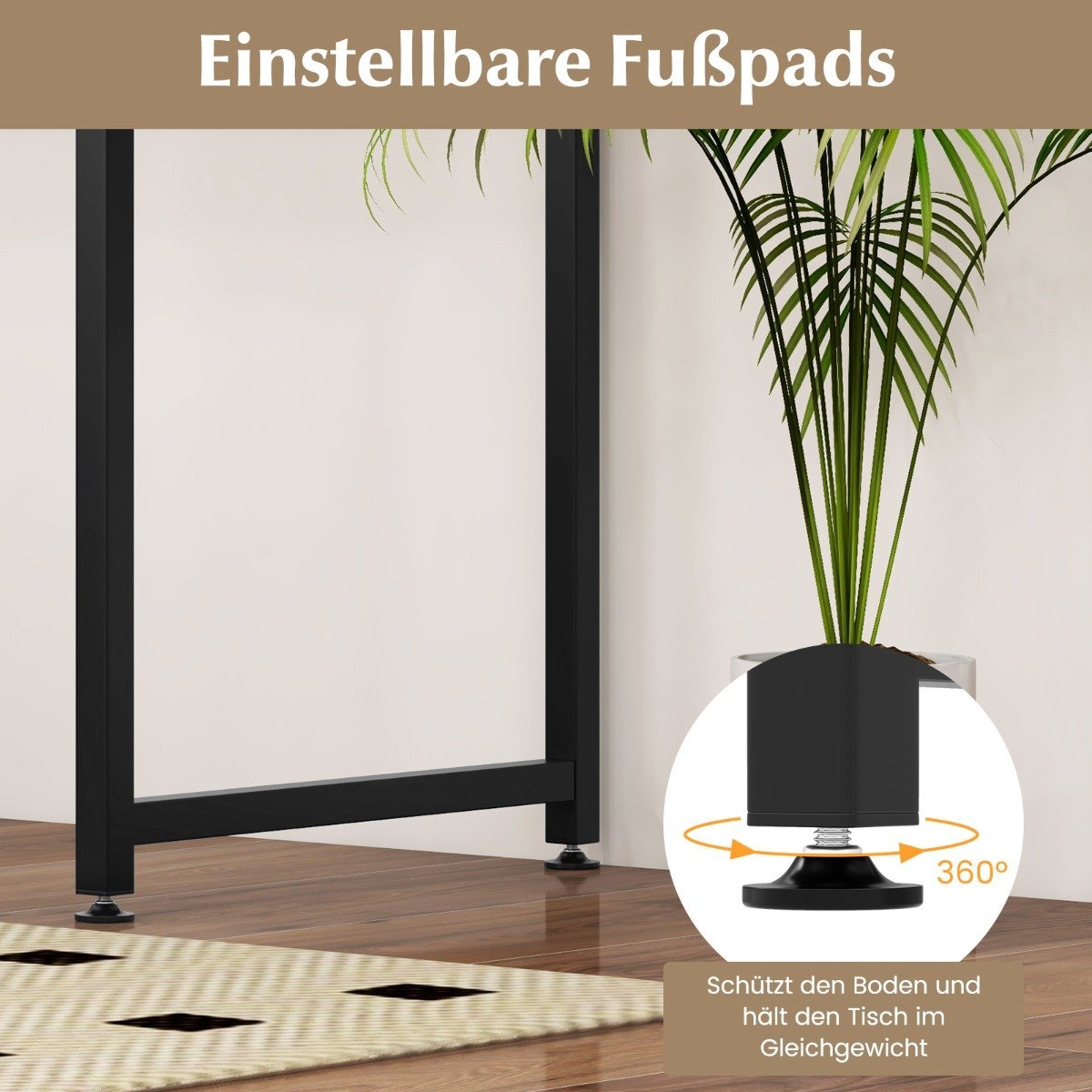 - Reguliuojamos kojelės apsaugo grindis nuo subraižymų ir užtikrina stalo stabilumą.