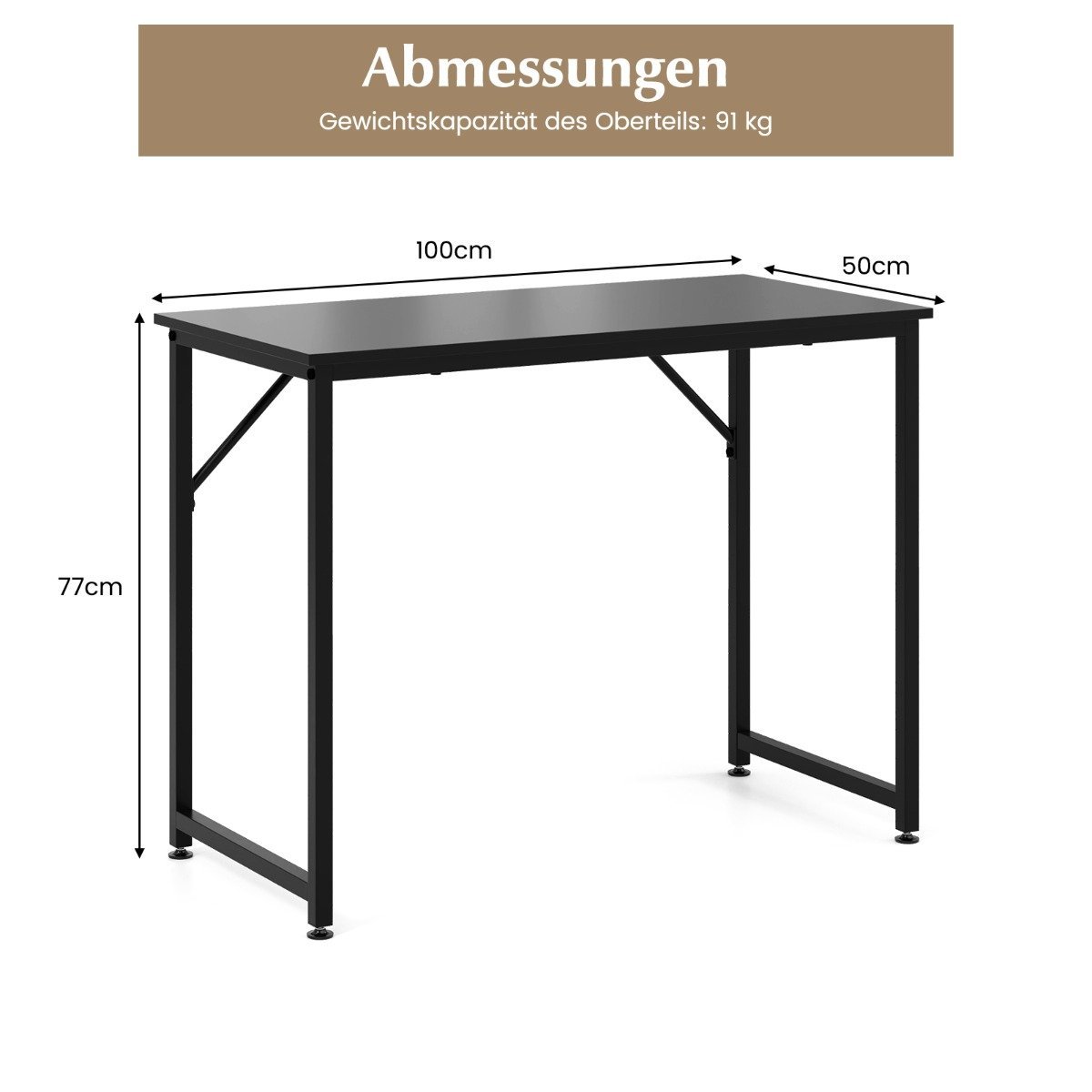 Kompaktiškas kompiuterio stalas su reguliuojamomis kojelėmis 100×50 cm (Juoda)