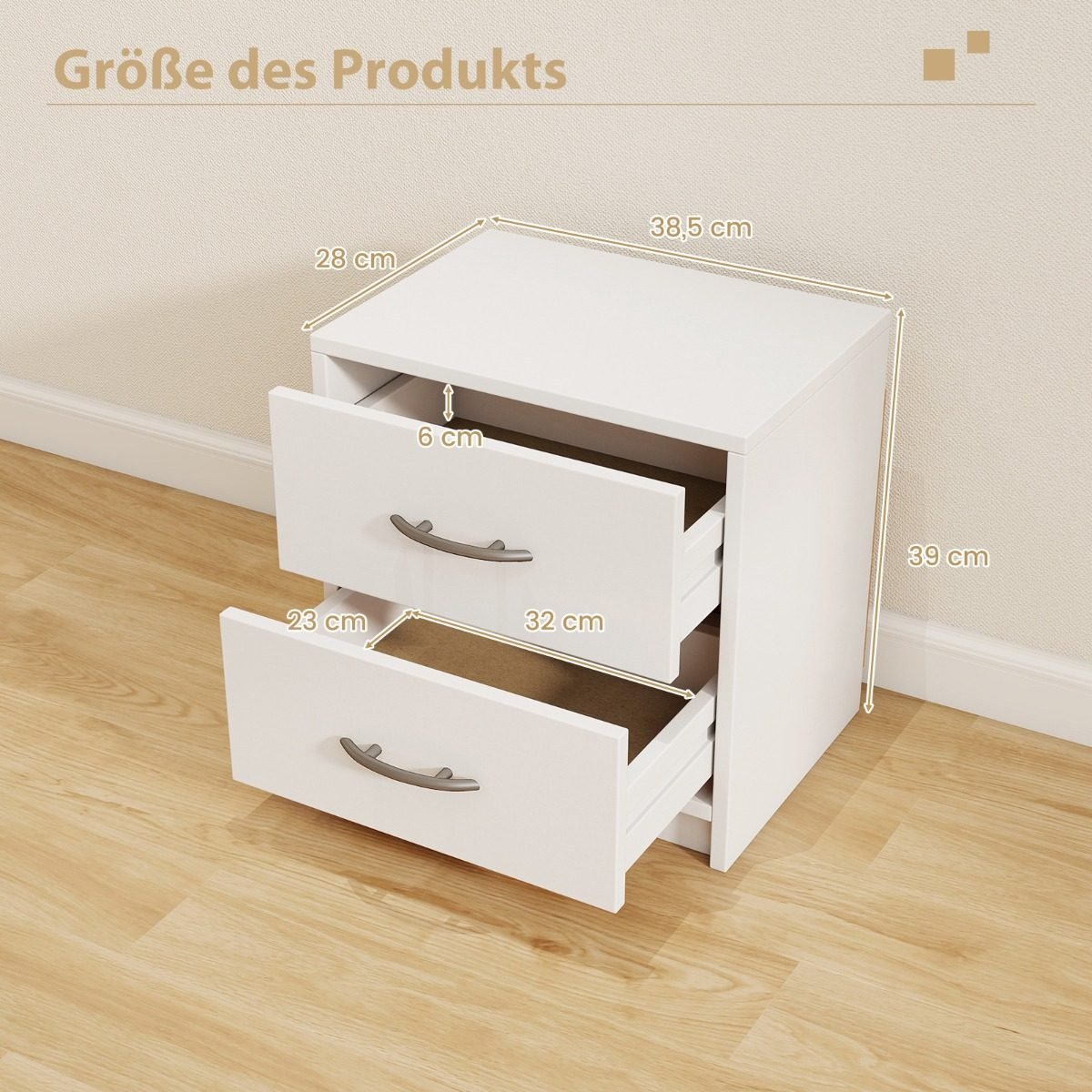 Kompaktiškas naktinis staliukas su dviem stalčiais (Balta)