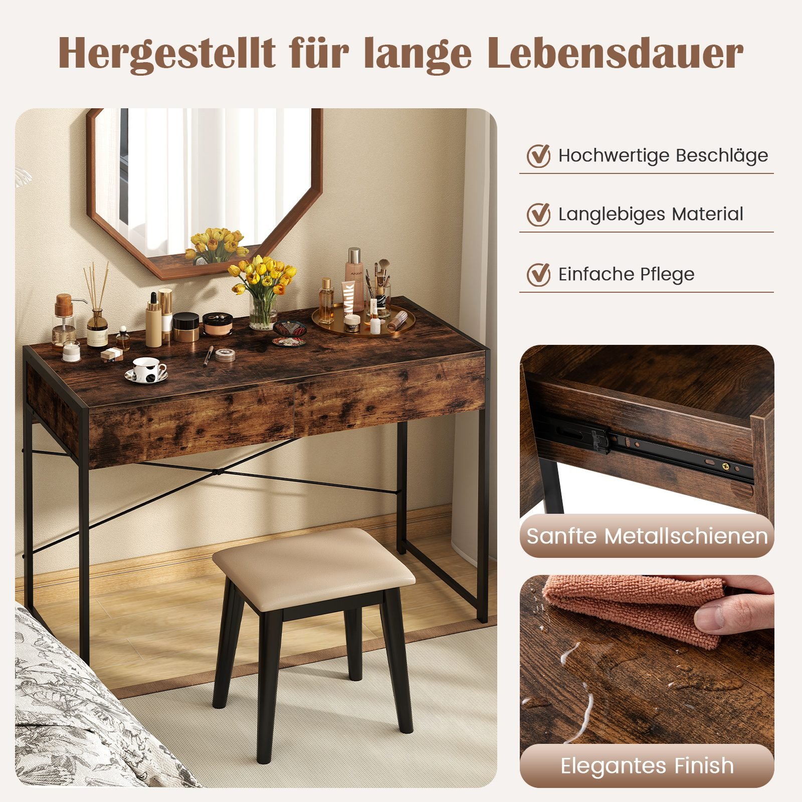Kompaktiškas rašomasis stalas su dviem stalčiais (Rustikalios rudos)