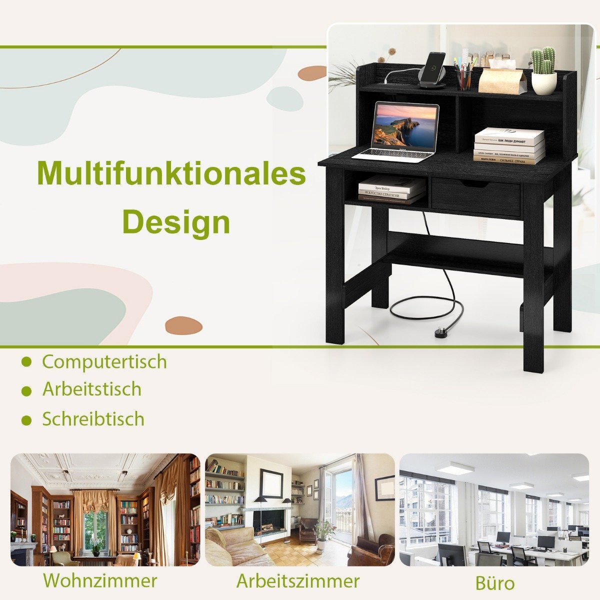 Padidinkite savo darbo erdvę su šiuo funkcionaliu stalu, sukurtu jūsų mokymosi ir darbo reikmėms. Integruota įkrovimo stotelė ir kabelių valdymo sistema užtikrina patogų priėjimą prie elektros, o plati stalviršio plokštė ir atviras viršutinis staliukas suteikia daugiau vietos daiktams laikyti ir eksponuoti. Su papildoma spintele ir stalčiumi, šis stalas padeda palaikyti tvarkingą darbo aplinką.