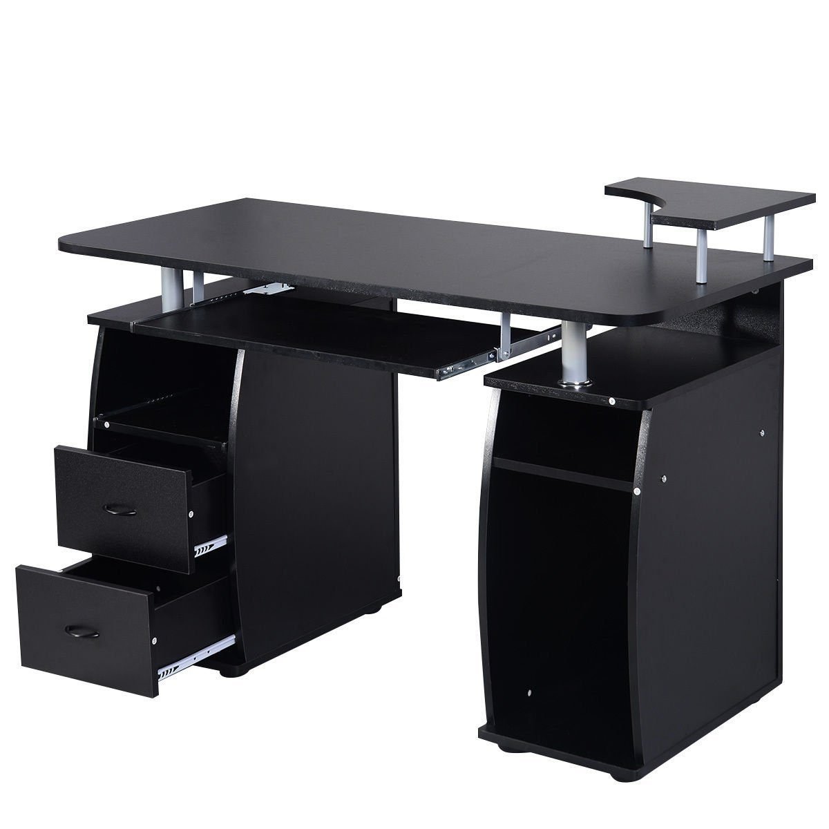 Kompiuterinis stalas su ištraukiama klaviatūros ir spausdintuvo lentyna (Juoda)