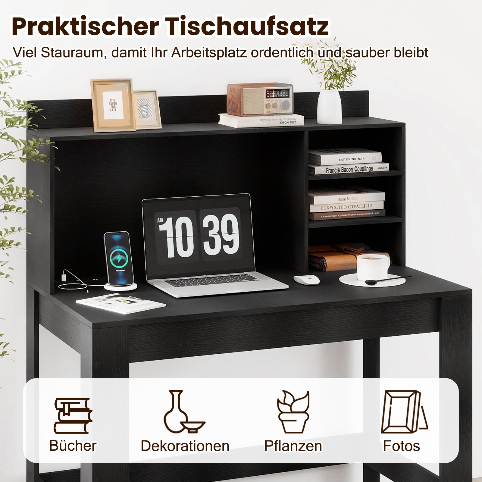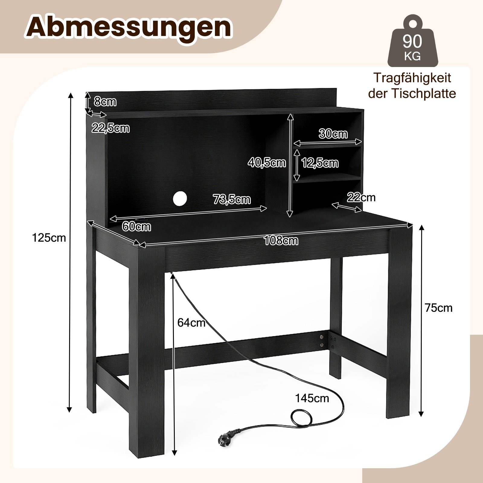 - Praktiškas antstatas su pakankamai vietos daiktams laikyti, padedantis palaikyti tvarką darbo vietoje.