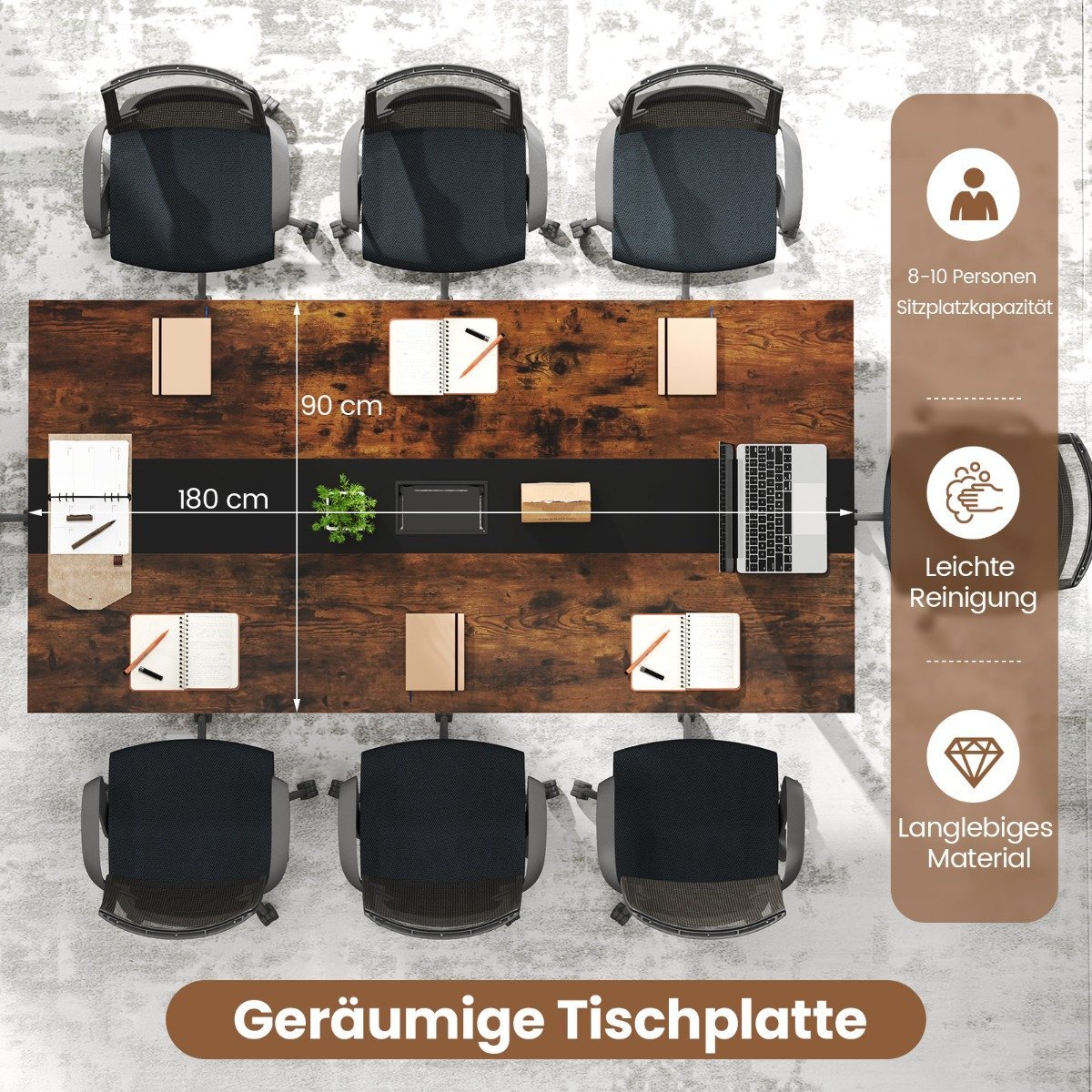 Konferencinis stalas 180×90 cm 8-10 žmonėms (Ruda)