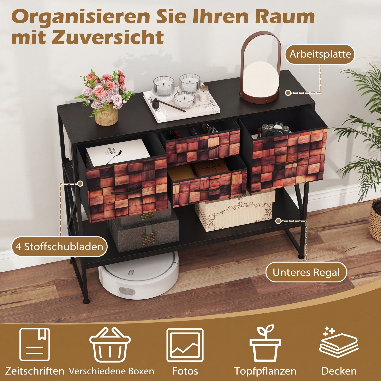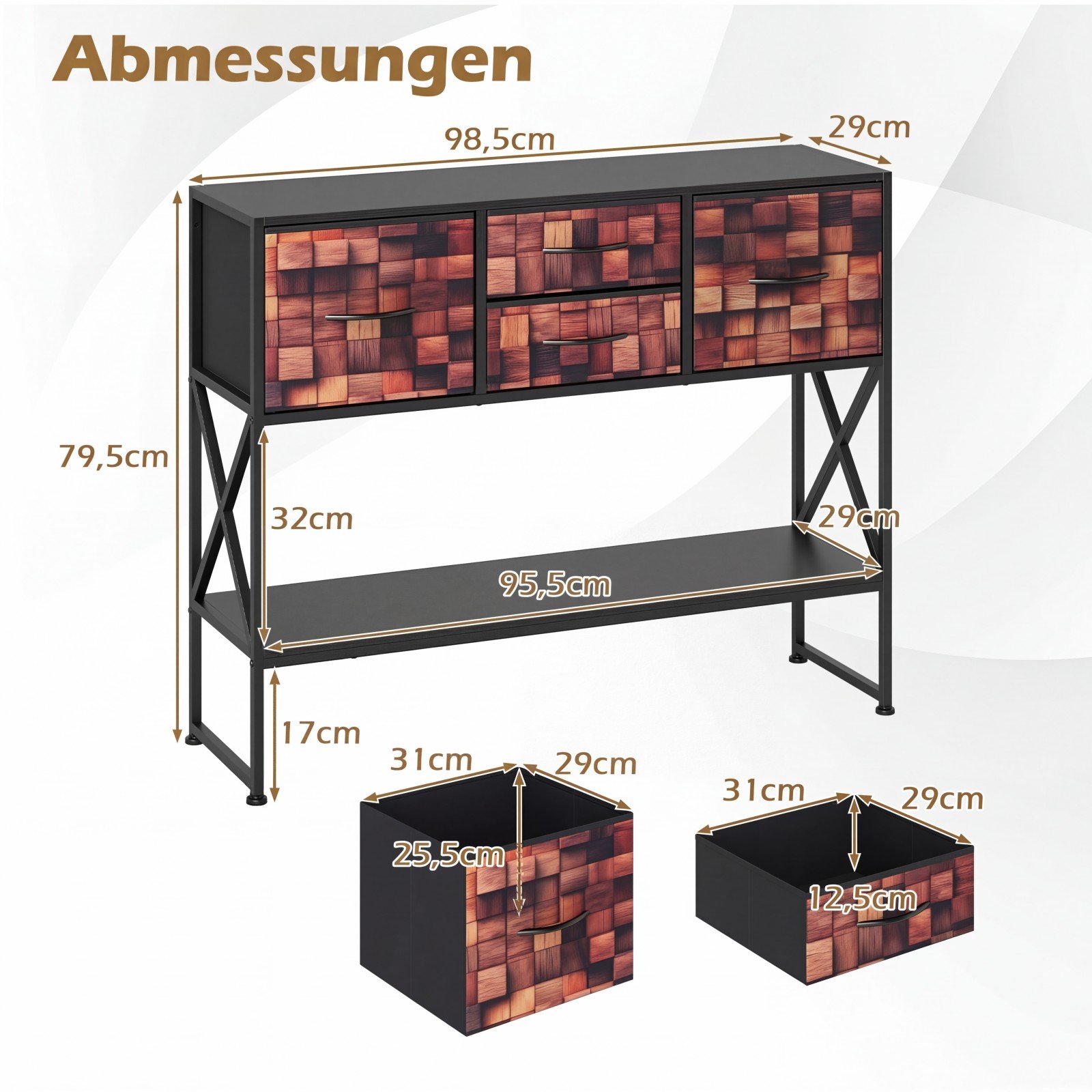 Konsolinis staliukas su 4 medžiaginiais stalčiais ir medienos mozaika (Kavos)