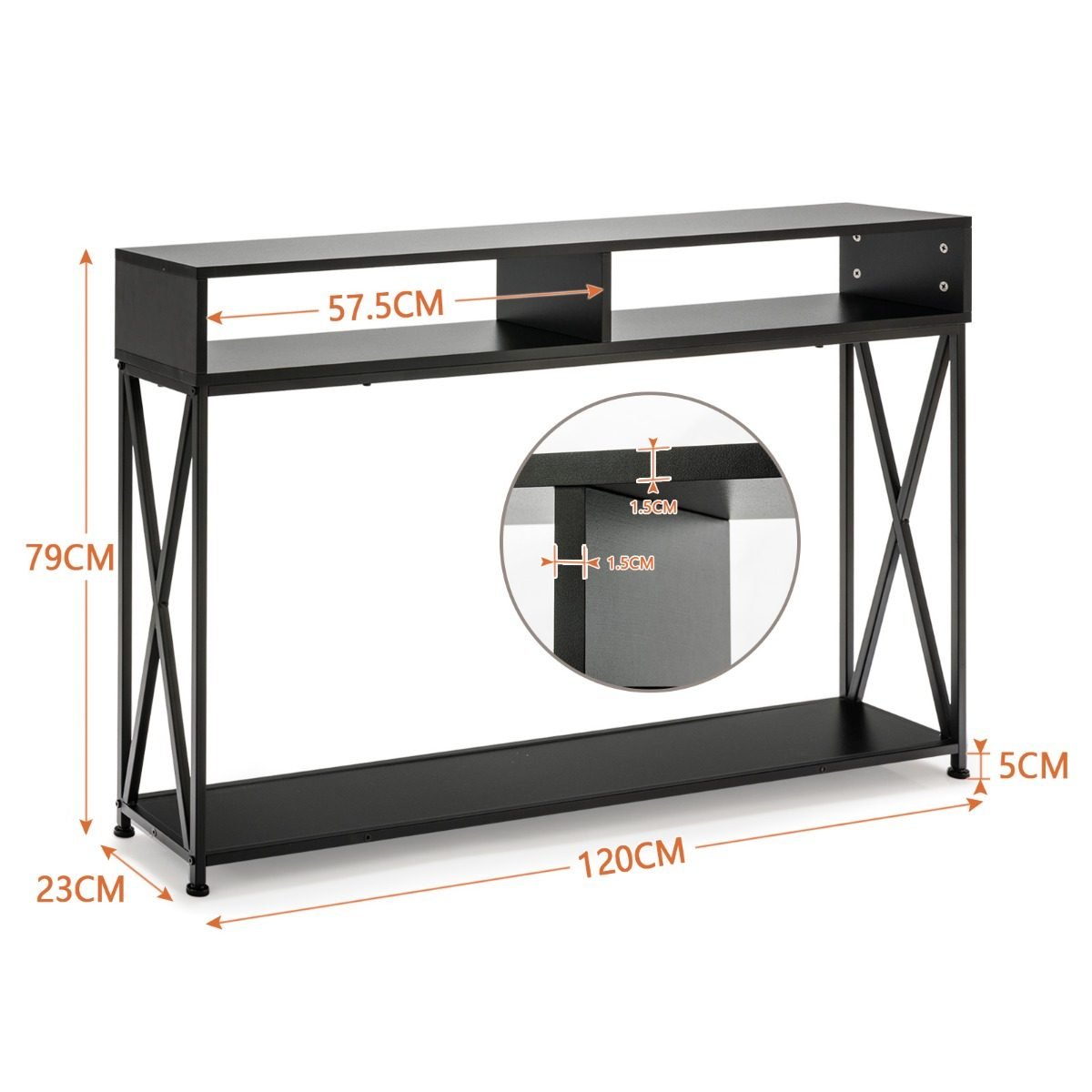 Konsolinis staliukas su atviru lentynėle ir plieniniu rėmu 120x23x79 cm (Juoda)