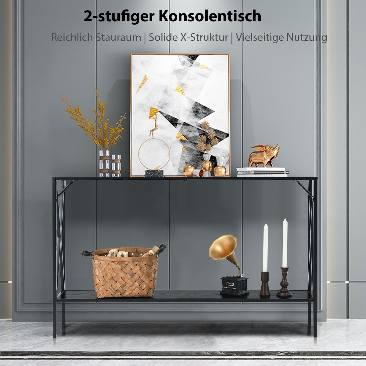 Šis dviejų lygių konsolinis staliukas – puikus pasirinkimas jūsų namams, suteikiantis daug vietos daiktams laikyti ir dekoruoti. Jo tvirta konstrukcija garantuoja ilgaamžiškumą ir stabilumą.