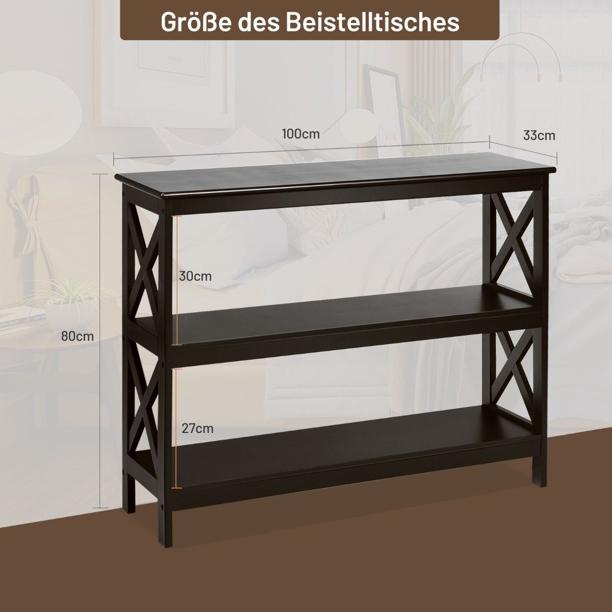 Konsolinis staliukas su lentynomis 100x33x80 cm (Ruda)