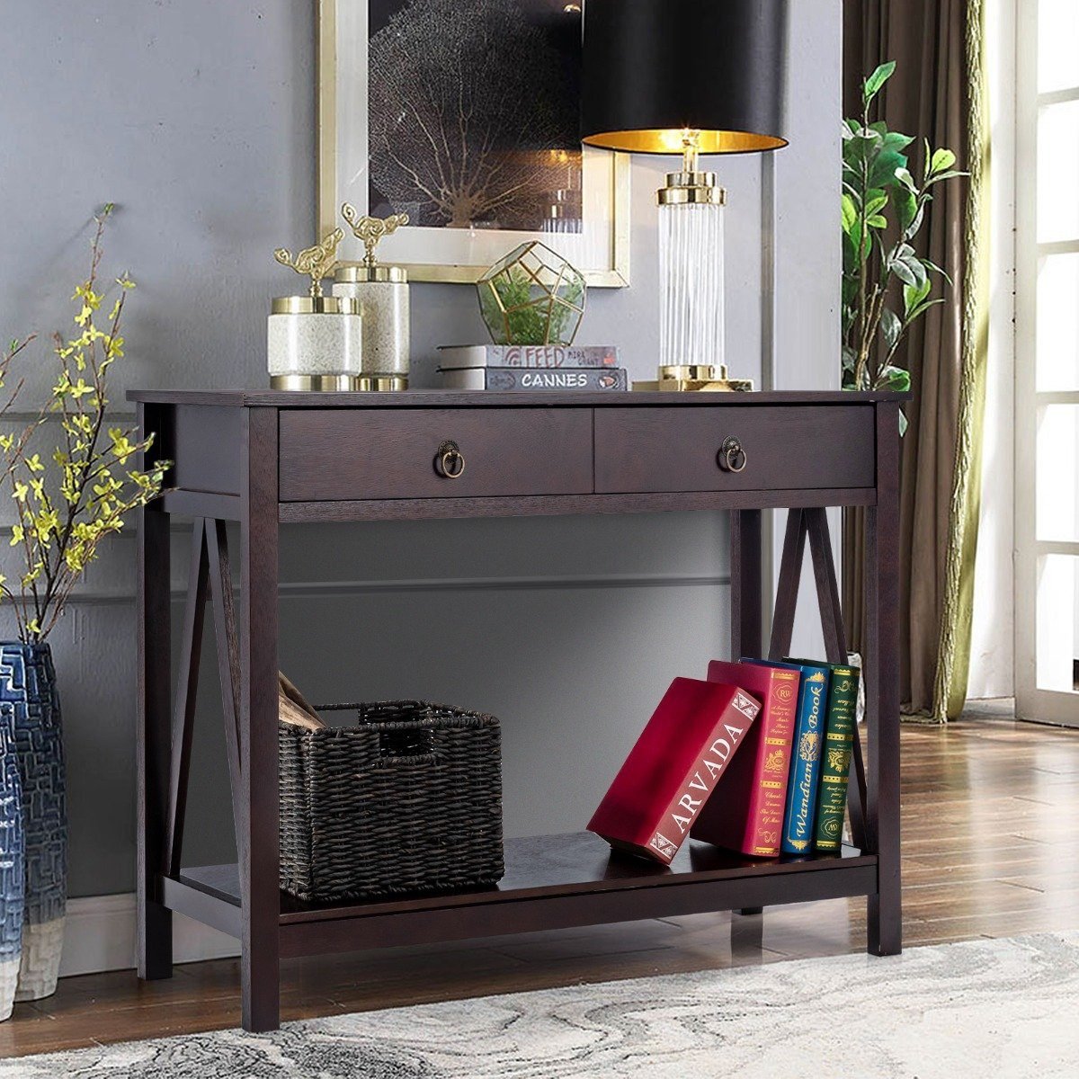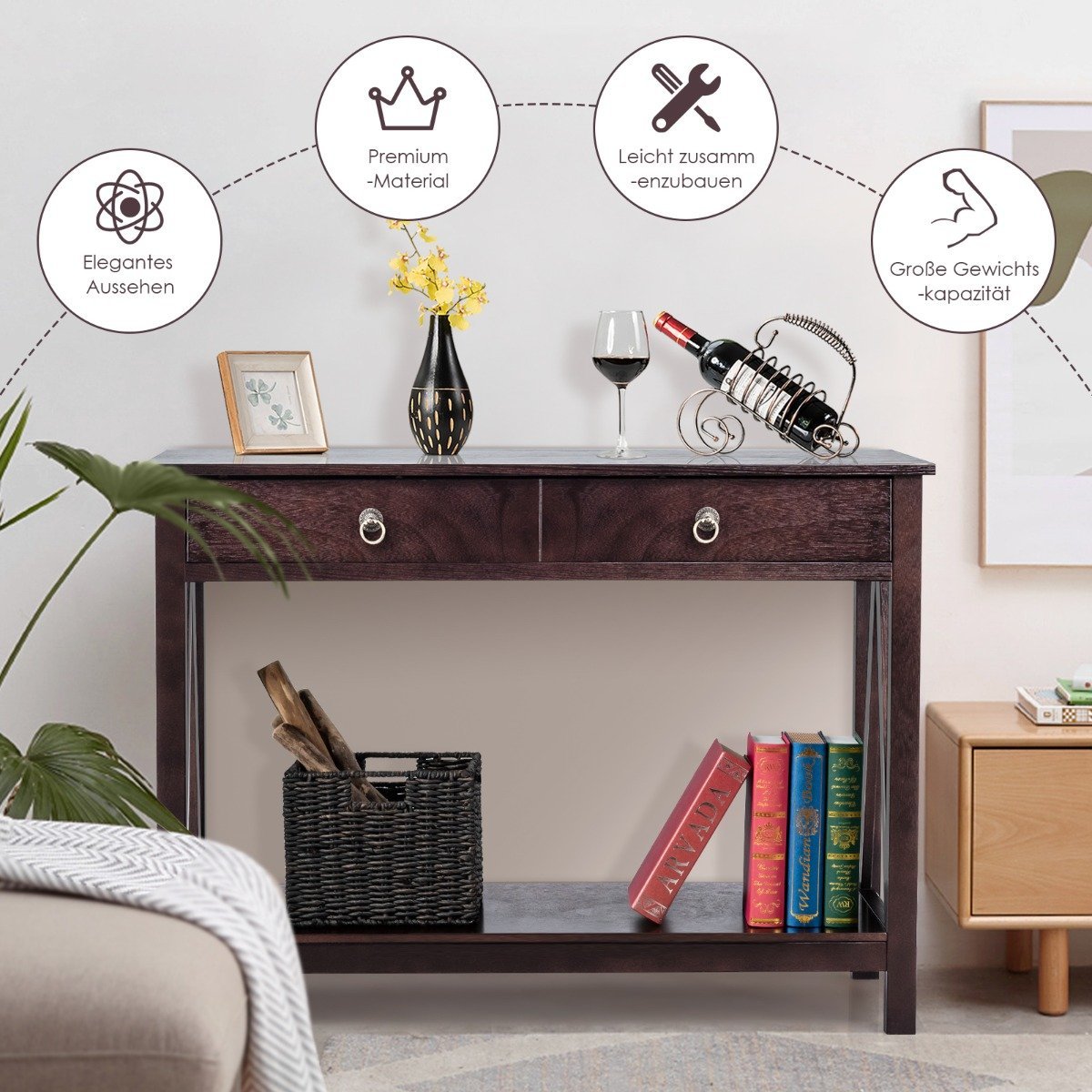 Konsolinis staliukas su stalčiais ir atviru skyriumi (Ruda)