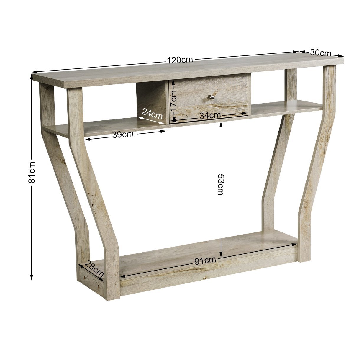 - Bendri matmenys: 120 x 30 x 81 cm (I x P x A)