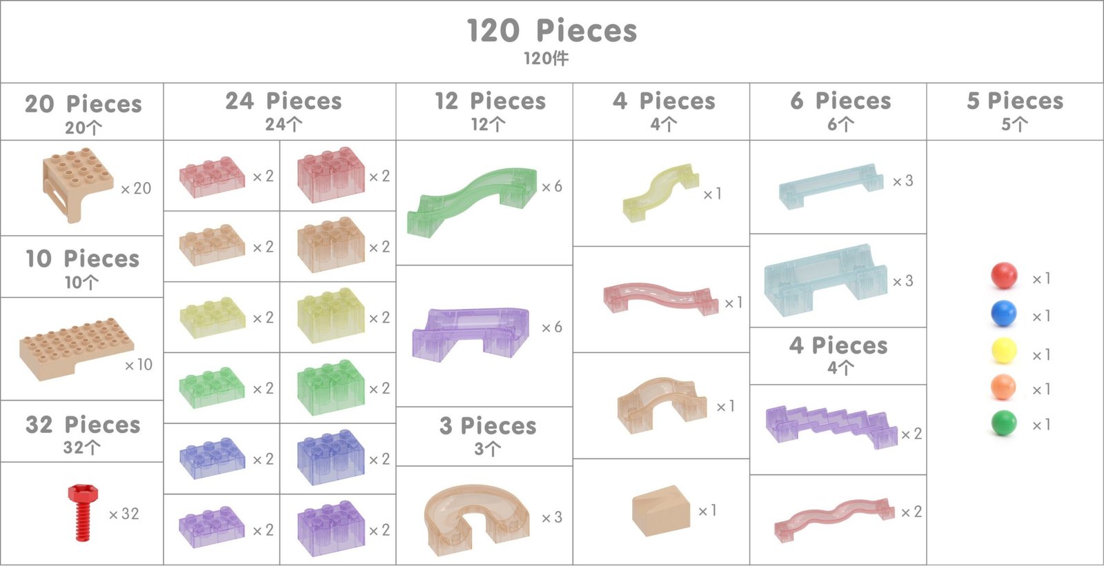 • Rinkinį sudaro 120 detalių.