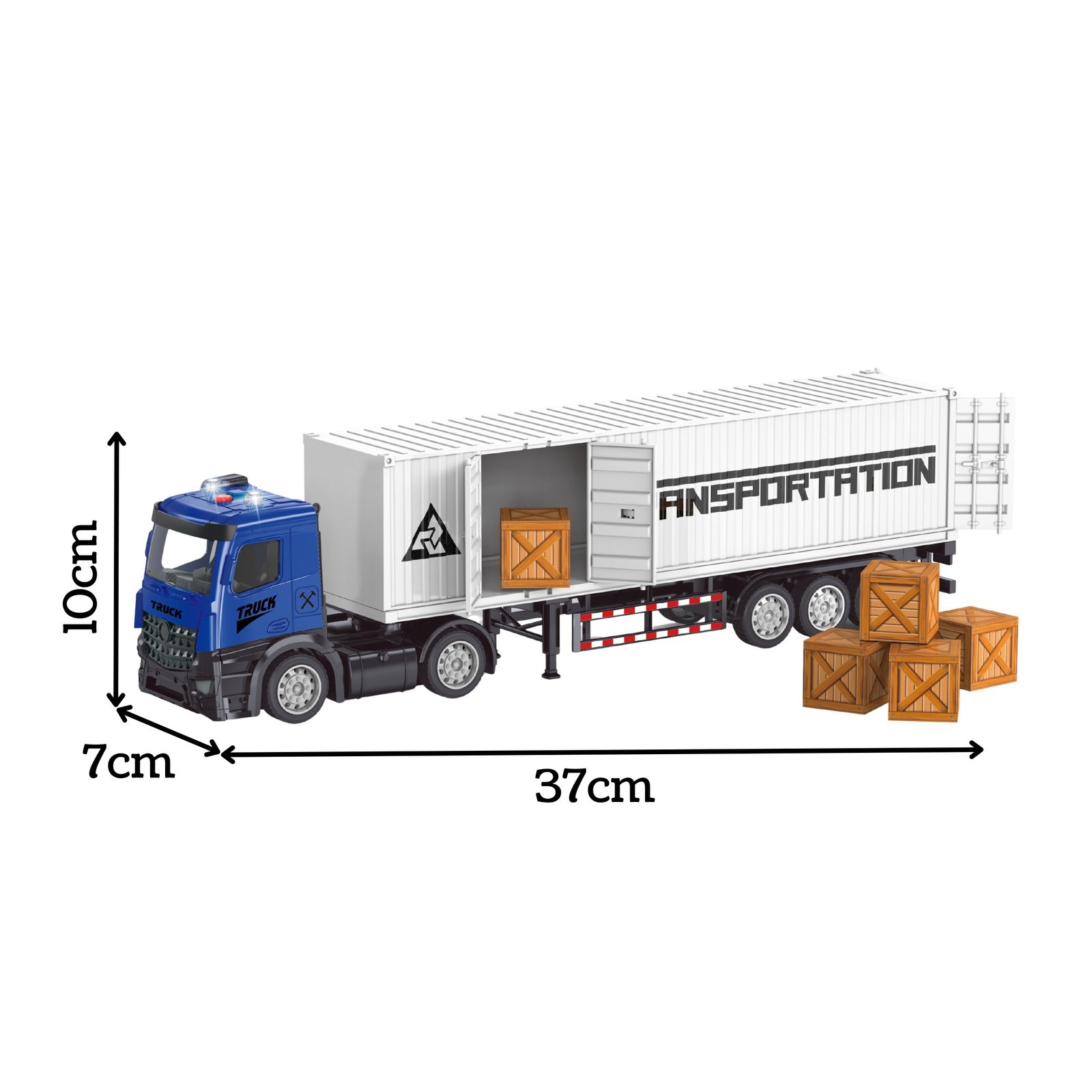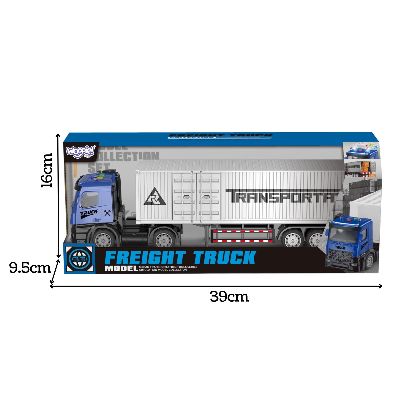 „Woopie“ konteinerinis sunkvežimis, pasižymintis tikroviškumu ir funkcionalumu, užtikrina ilgas įtraukiančių žaidimų valandas. Su šviesos ir garso efektais vaikai gali pasijusti tikrais sunkvežimio vairuotojais. Inercinė pavara (pastūmus važiuoja) užtikrina dinamišką važiavimą, o atidaromas konteineris ir krovinių dėžutės leidžia kurti tikroviškus žaidimo scenarijus. Šis žaislas ne tik linksmina, bet ir lavina vaiko motoriką, vaizduotę bei kūrybiškumą.