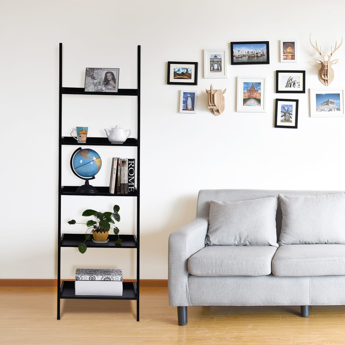 Kopėčių stiliaus lentyna su 5 lentynomis (Juoda)