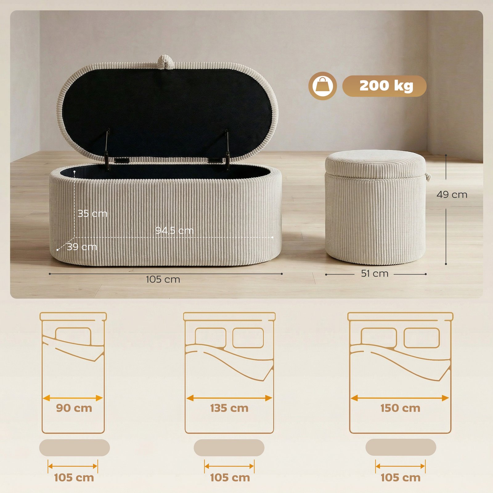 Netvarkinga svetainė apsunkina atsipalaidavimą. Šis suoliukas su daiktadėže išsprendžia problemą: pakelkite dangtį, pasinaudokite saugojimo vieta, sukurkite tvarką. Nesenstantis velveto išvaizda sujungia stilių ir šilumą, o paminkštinta sėdynė suteikia vietos dviem asmenims. Paverskite savo kambarį organizuota poilsio vieta, kuri kviečia jaustis patogiai.