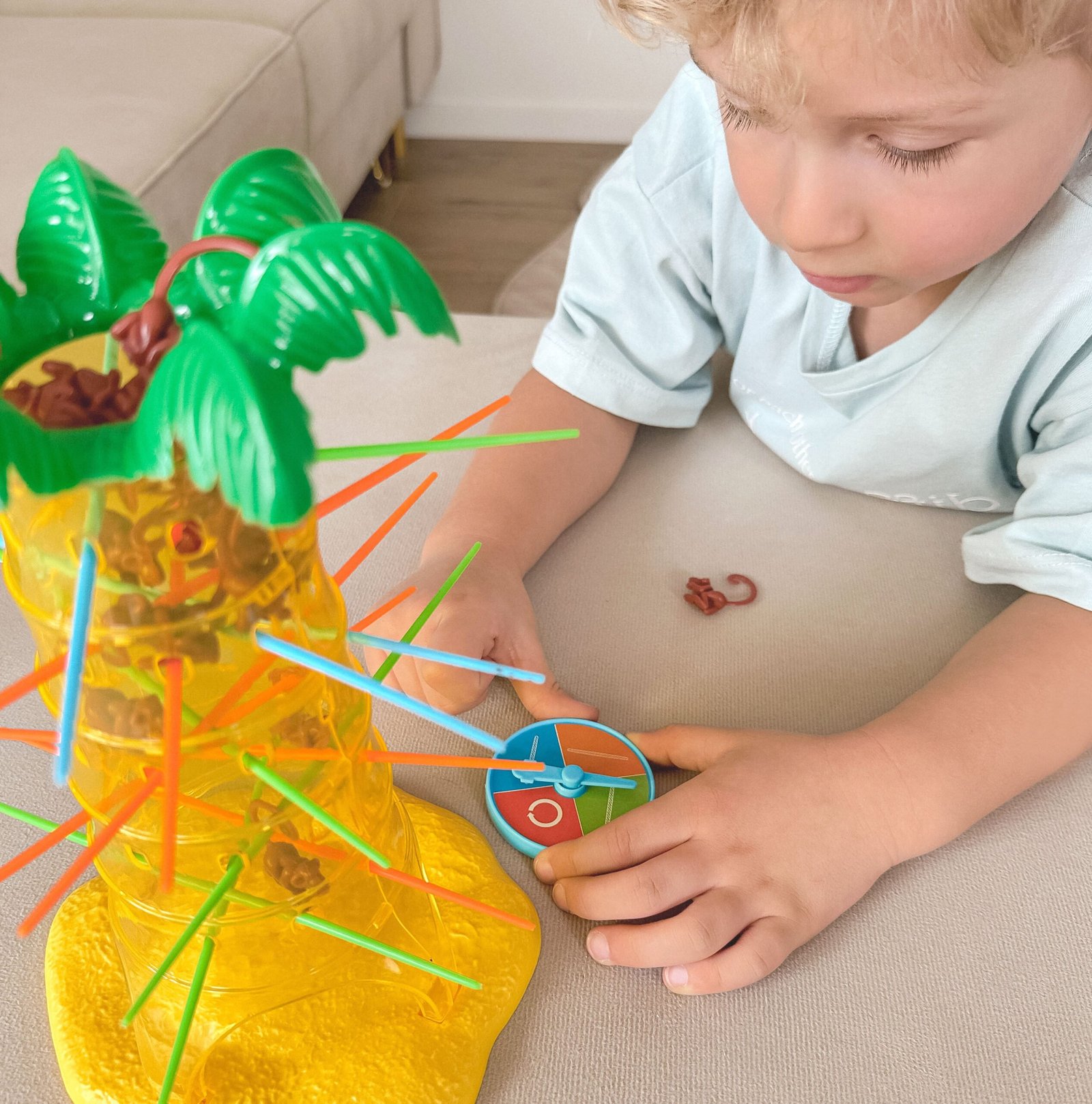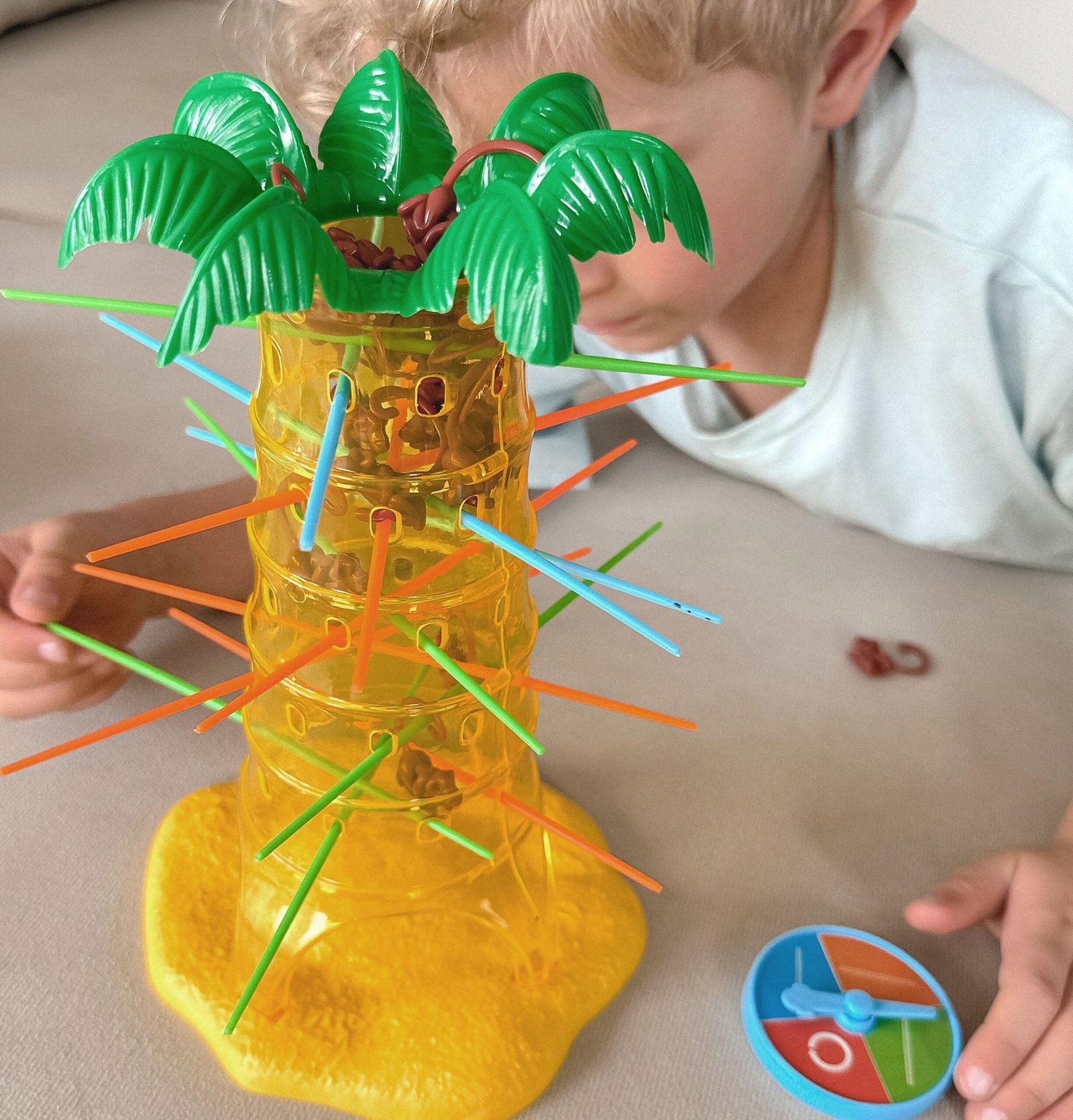 Žaidimo principas paprastas: sudėkite pagaliukus į palmės angas, tada įmeskite beždžionėles į medžio vidų. Žaidėjai paeiliui suka ratą, kuris parodo, kokios spalvos pagaliuką reikia ištraukti. Tikslas – ištraukti pagaliukus taip, kad kuo mažiau beždžionėlių nukristų. Laimi tas žaidėjas, kuriam nukrenta mažiausiai beždžionėlių nuo medžio.