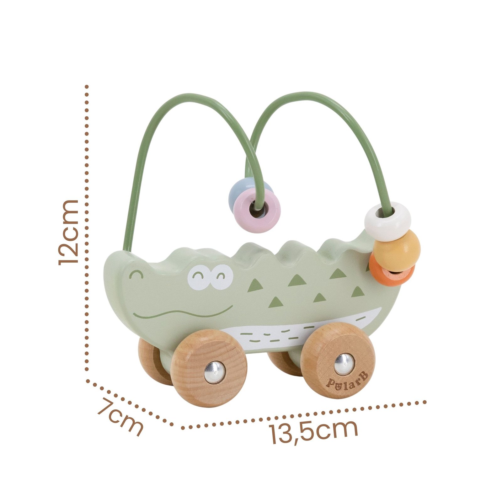 Karoliukų labirintas „Krokodilas“ – tai pirmasis lavinamasis žaislas vaikams nuo 12 mėnesių. Šis žaislas jungia karoliukų labirinto ir stumduko funkcijas, suteikdamas dvigubą lavinimo galimybę. Vaikas gali stumdyti spalvotus karoliukus metaliniu lanku arba ridenti žaislą grindimis, taip ugdydamas motorinius įgūdžius. Natūrali buko mediena ir suapvalinti kraštai užtikrina saugumą žaidimo metu. Patvarus, estetiškas ir lavinamasis žaislas – puikus pasirinkimas tėvams, ieškantiems kokybės ir funkcionalumo.