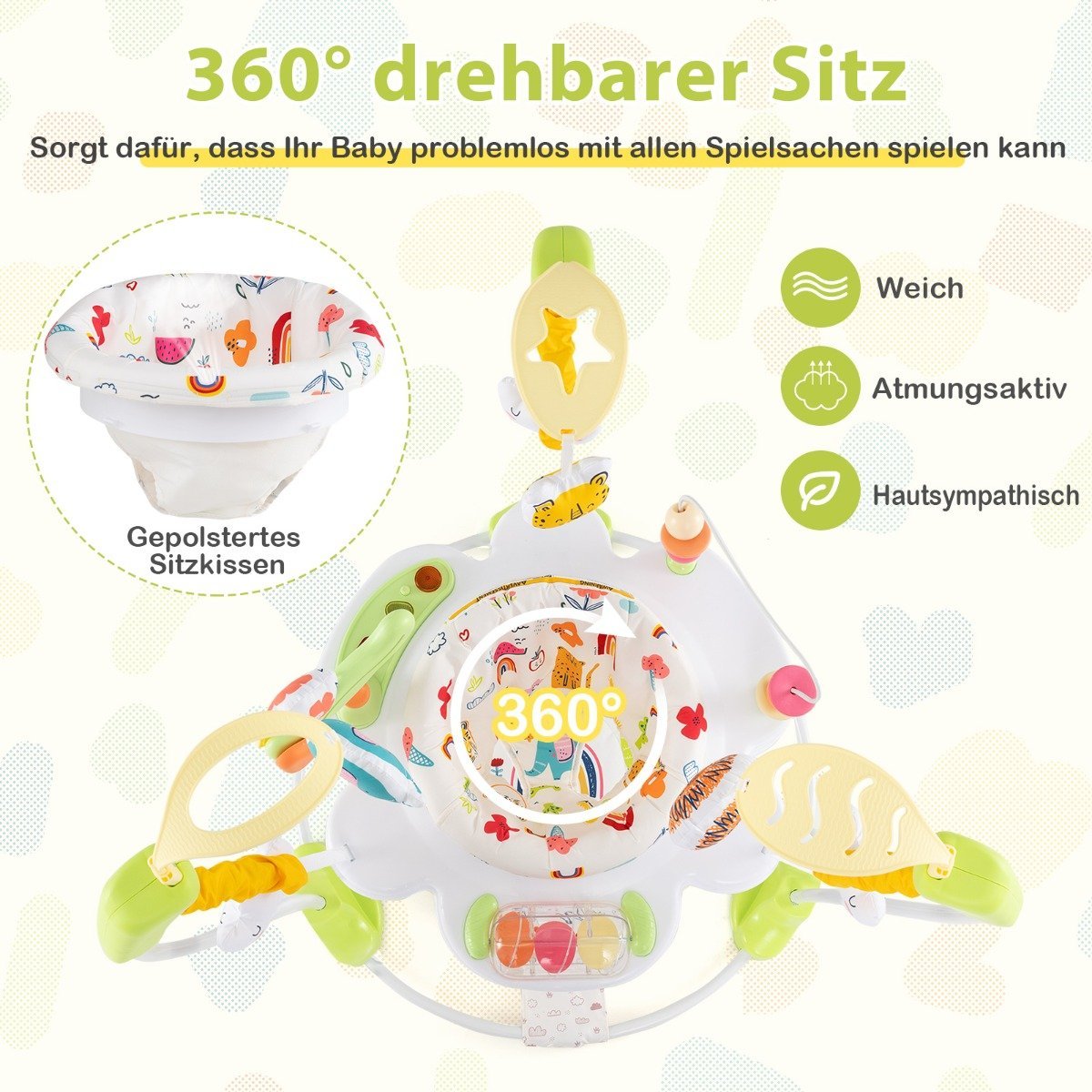 Kūdikių šokliukas su reguliuojamu aukščiu ir interaktyviais žaislais