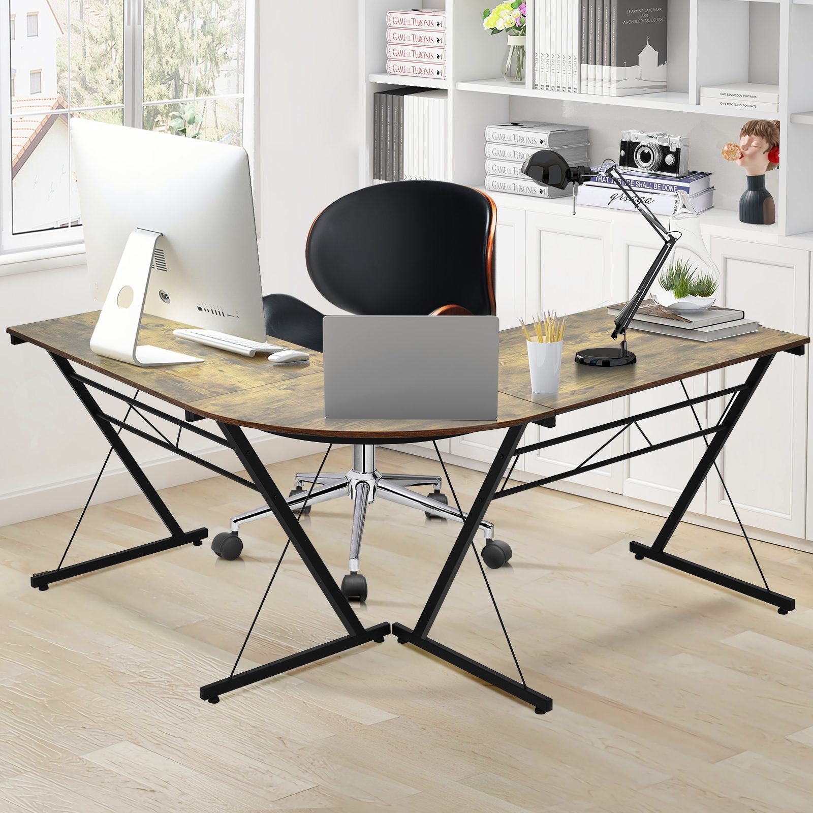 Atraskite elegancijos ir funkcionalumo derinį su mūsų L formos kampiniu rašomuoju stalu. Pagamintas iš aukštos kokybės P2 MDF plokštės ir tvirto geležies vamzdžių rėmo, šis stalas pasižymi stabilumu ir ilgaamžiškumu. Jo universalus dizainas puikiai dera prie bet kokio namų ar biuro interjero.