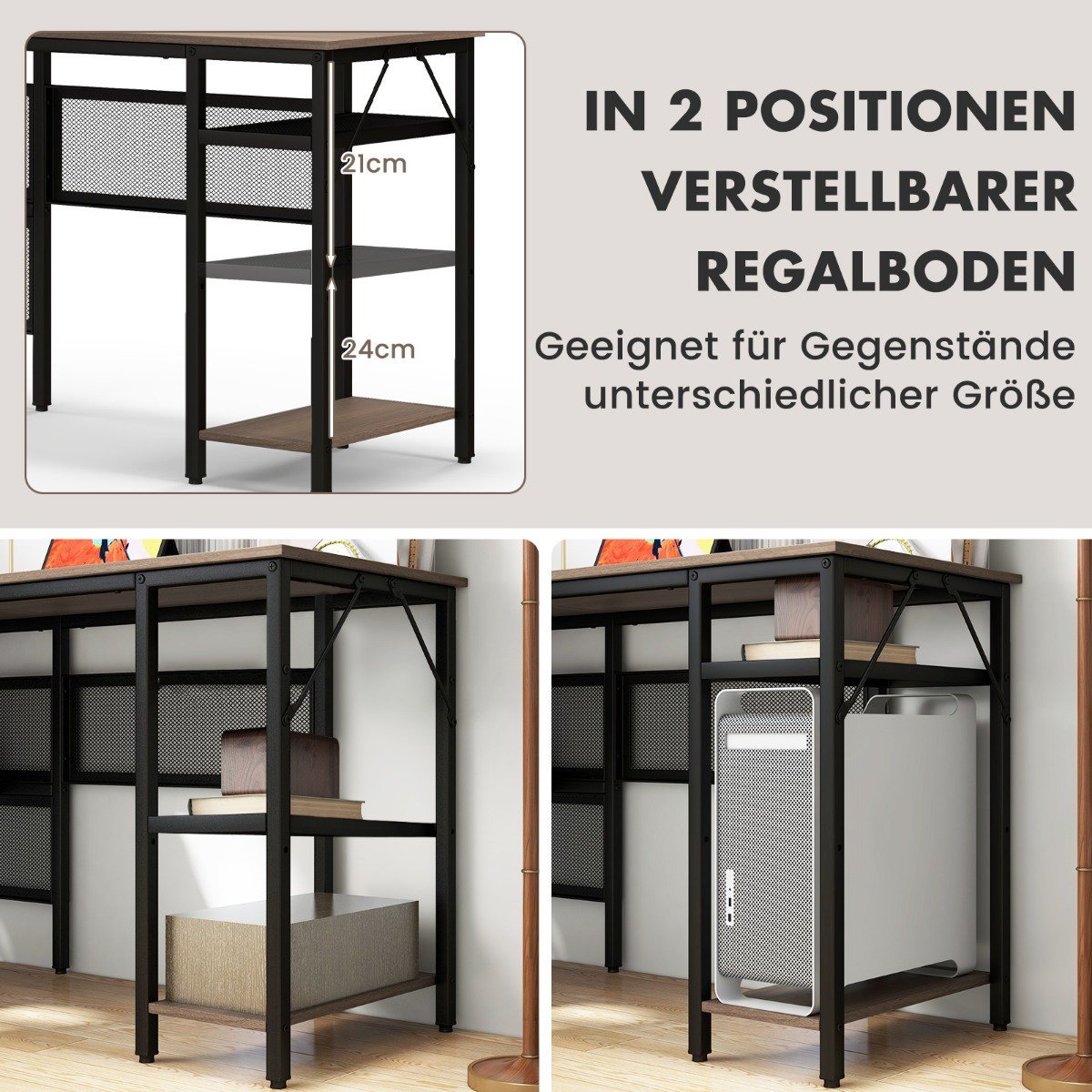 - Integruotos lentynos suteikia papildomos vietos knygoms, dokumentams ar dekoracijoms laikyti.